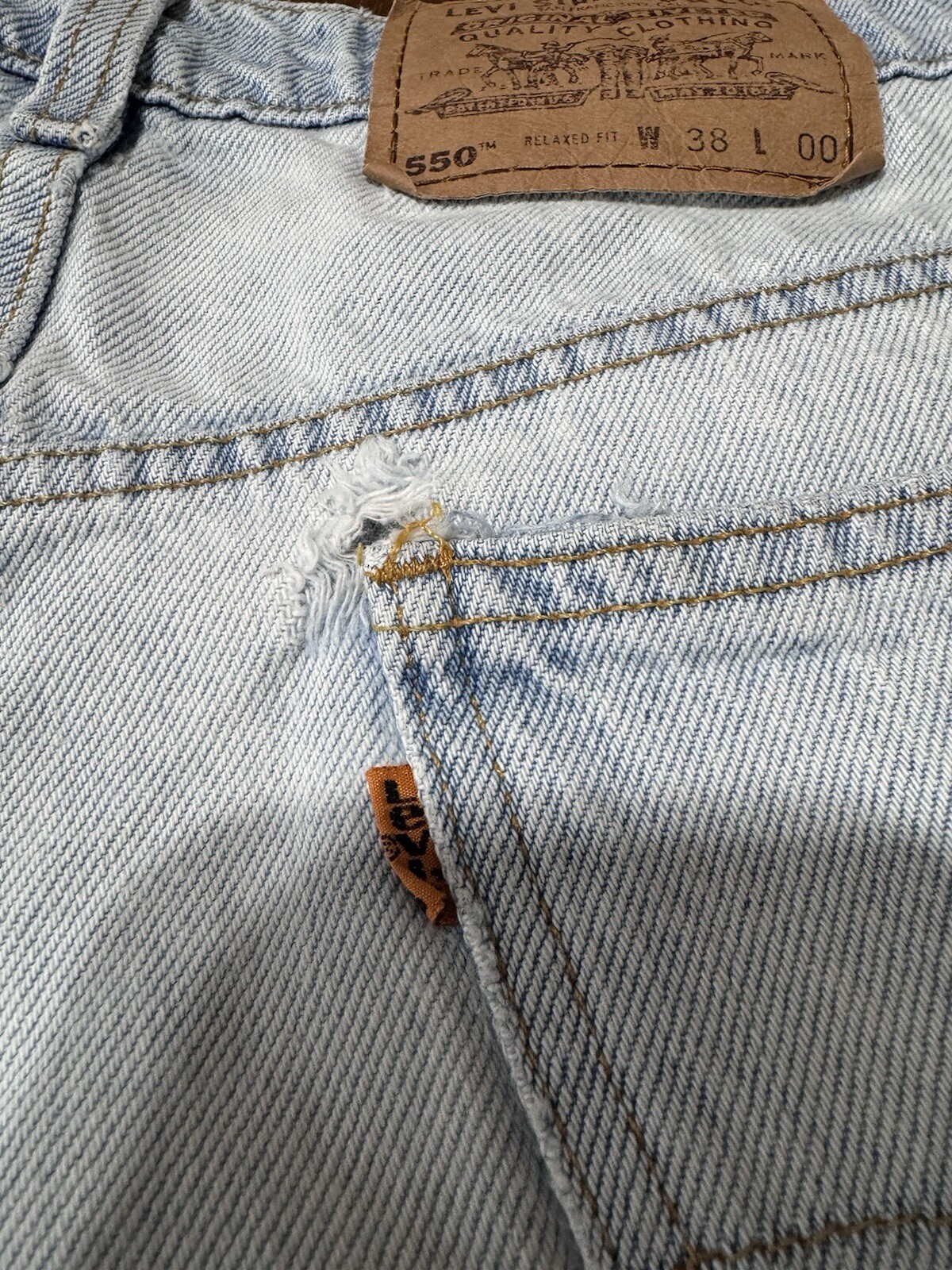 Vintage Levis 550 Shorts USA Made Orange Tab Denim Jean Mens Size 38 Read