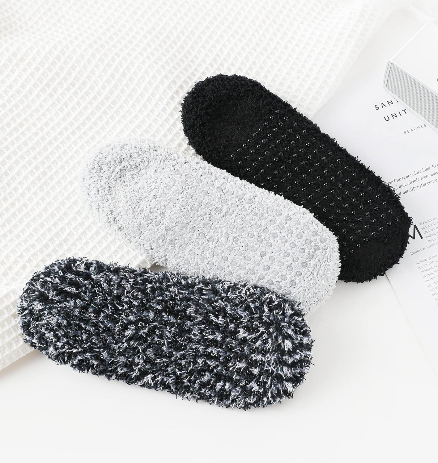 Slipper Socks for Women with Grippers Non Slip Fuzzy Socks with Grips Womens Gri