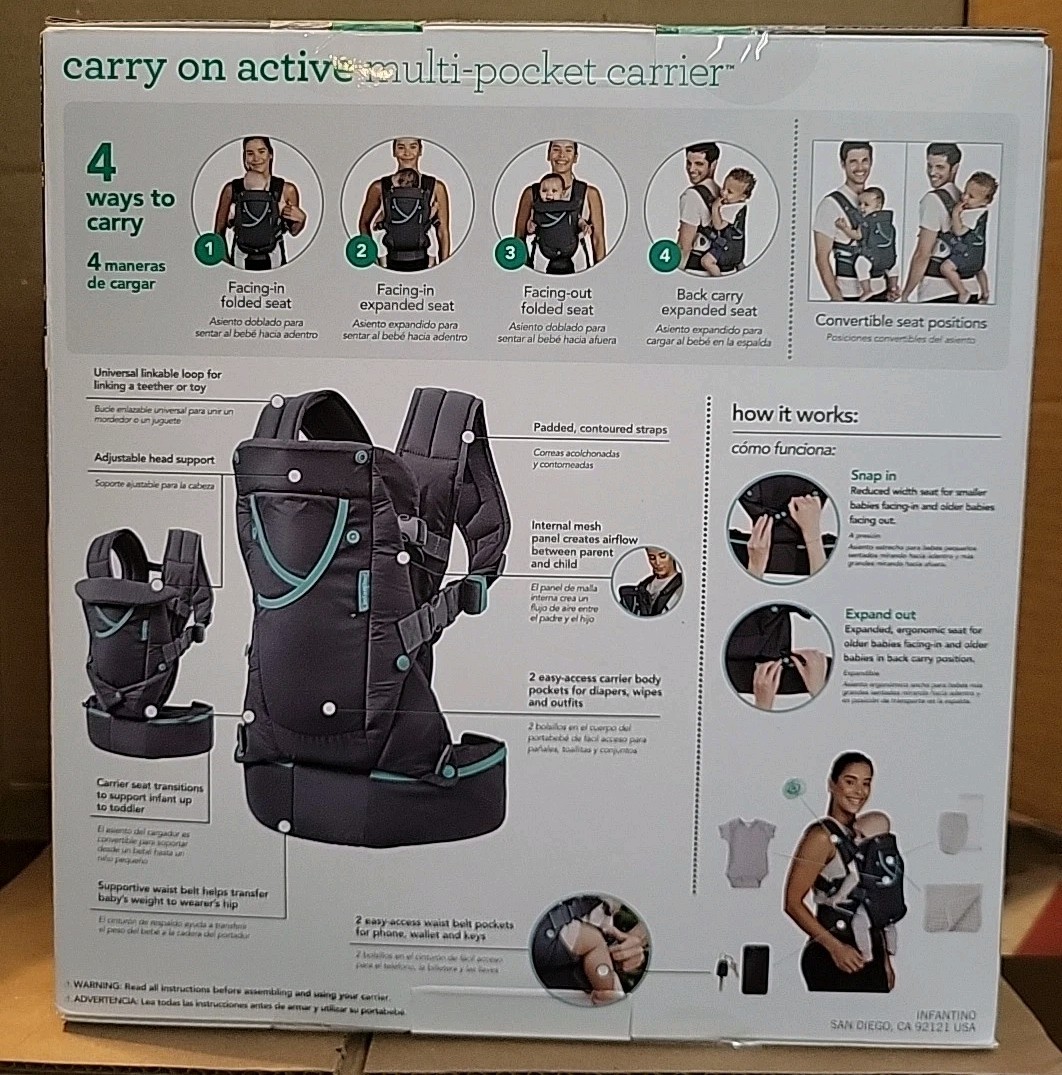 как выглядит Infantino Carry On Active Multi-Pocket Baby Carrier Gray Teal SnapBuckle Padded фото