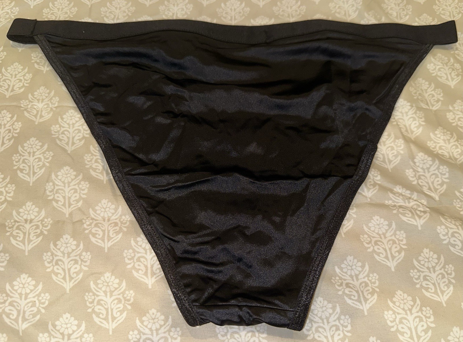 Glossy Black Wet Look Second Skin Satin Buttery Soft String Bikini Pantie XL NEW