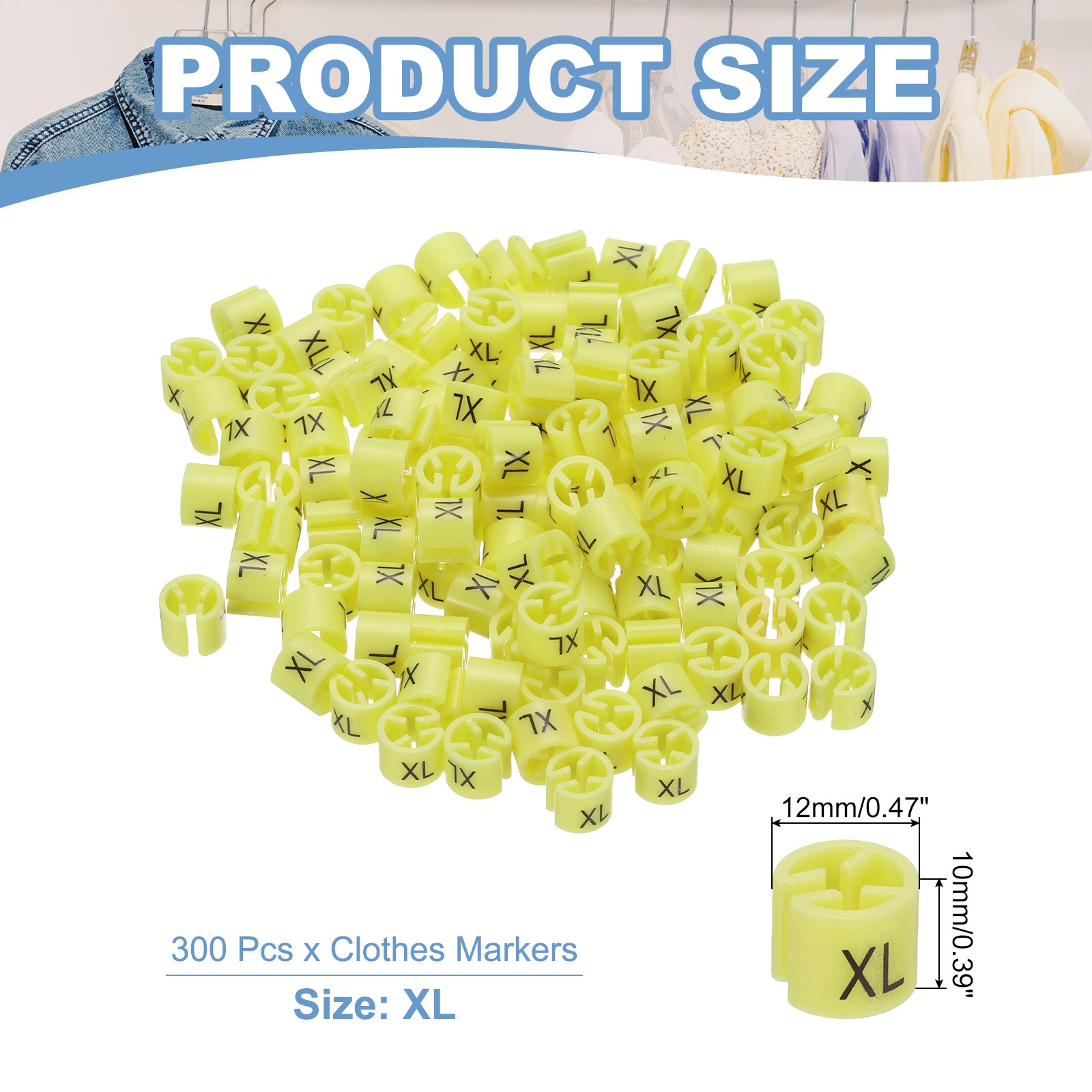 300 Pcs Clothes Hanger Marker XL Fit Rod Garment Size Tag Yellow