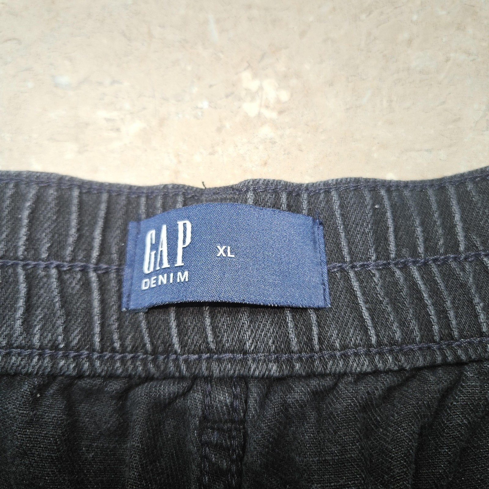 GAP Denim Pants XL Washed Black Utility Jogger Elastic Waist Cuffs Cotton Baggy