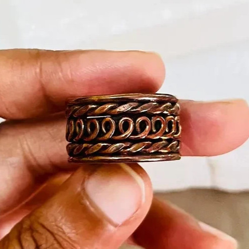 как выглядит Solid Pure Copper Minimalist Healing Ring, Handmade, Unisex, Oxidized Band фото