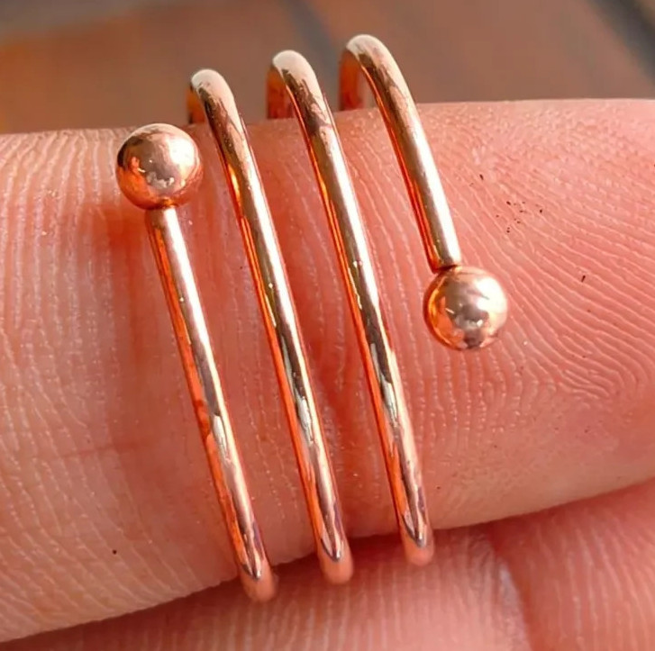 как выглядит Solid Pure Copper Minimalist Healing Ring, Handmade, Unisex, Spiral Ring фото