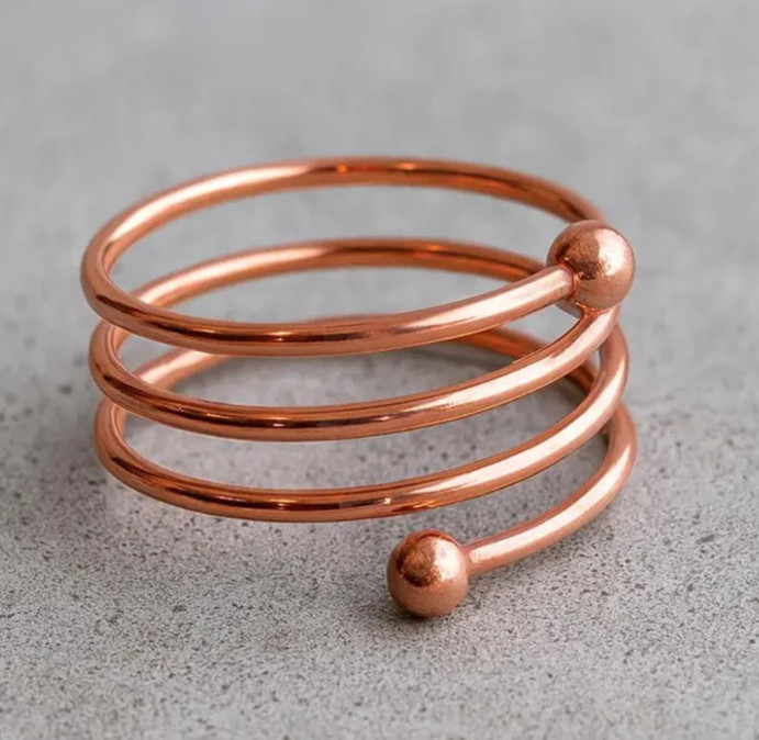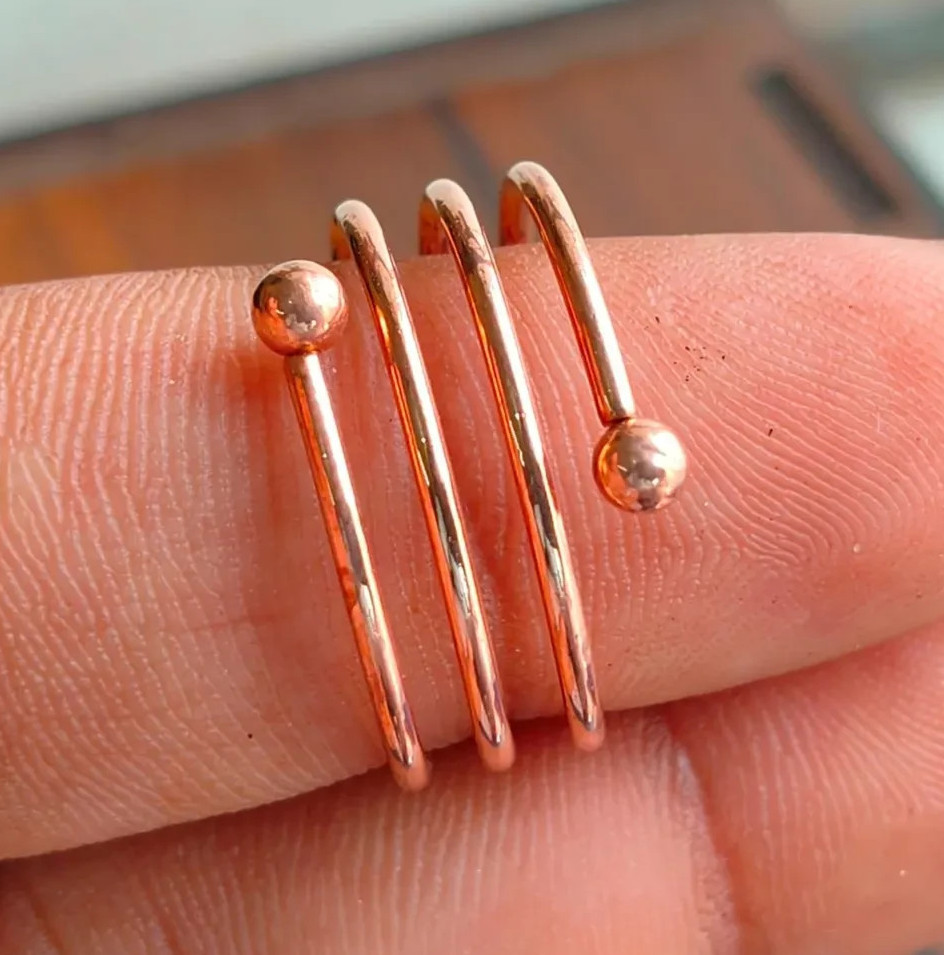 Solid Pure Copper Minimalist Healing Ring, Handmade, Unisex, Spiral Ring