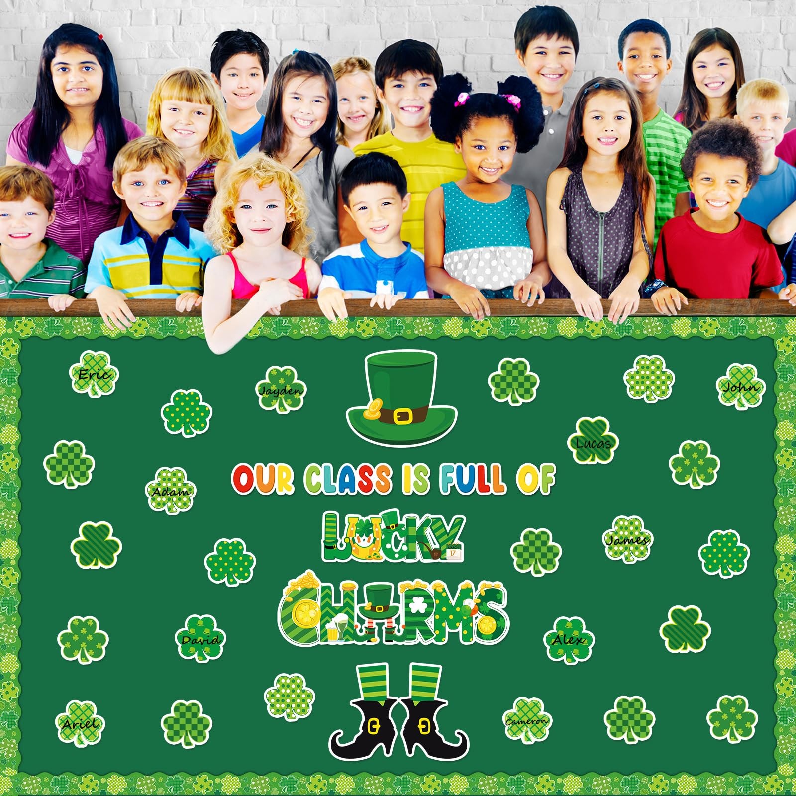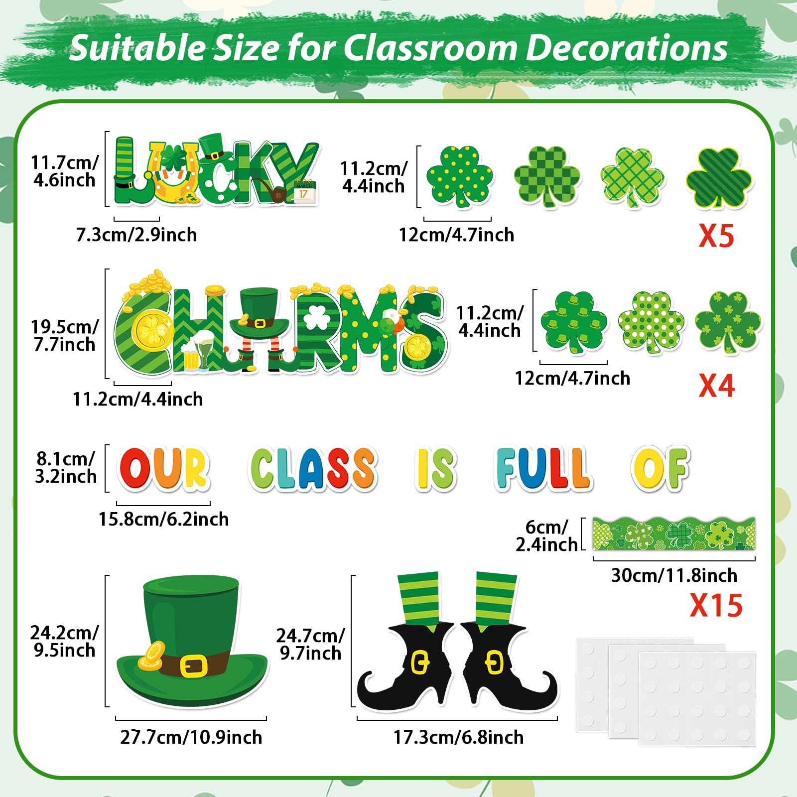 как выглядит St.Patrick Day Bulletin Board Decoration Set Lucky Shamrock Borders Cutouts for фото