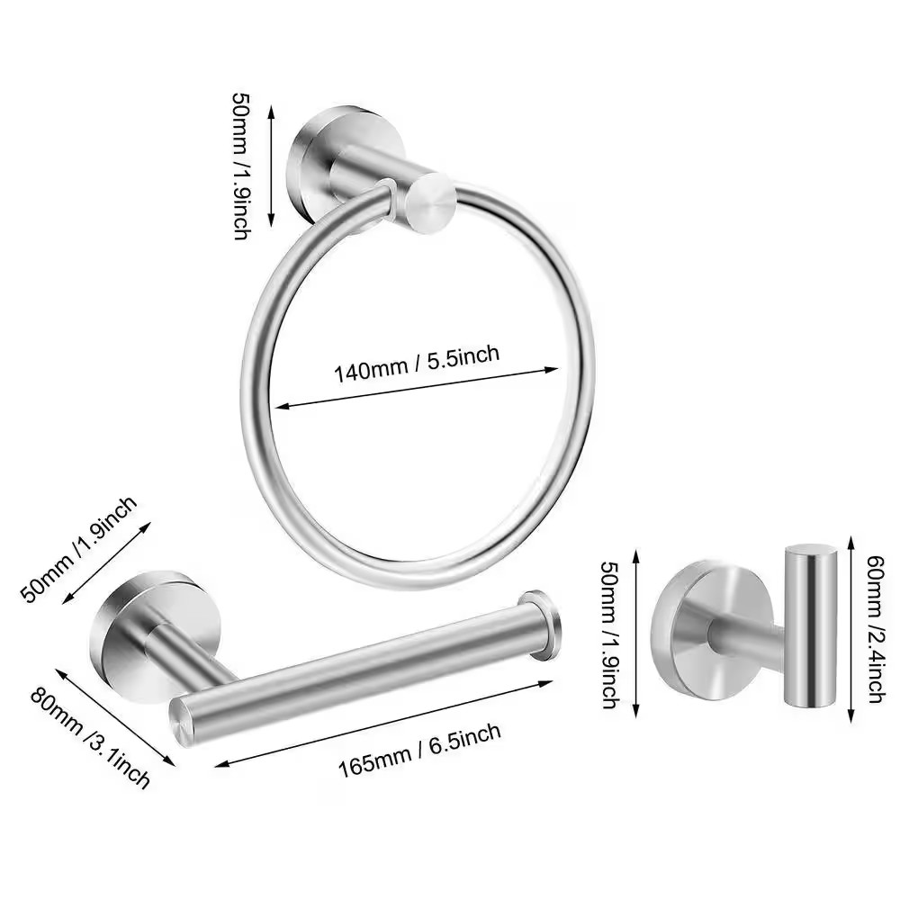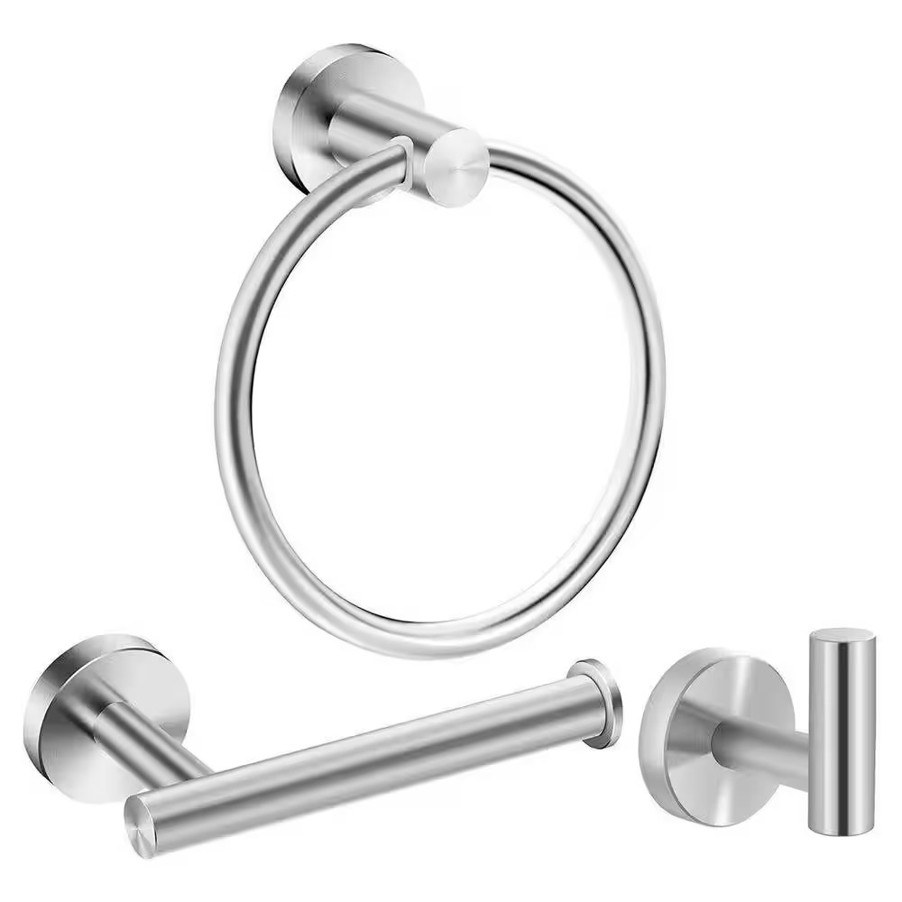 3-Piece Bath Hardware Set with Towel Ring Toilet Paper Holder and Towel Hook in