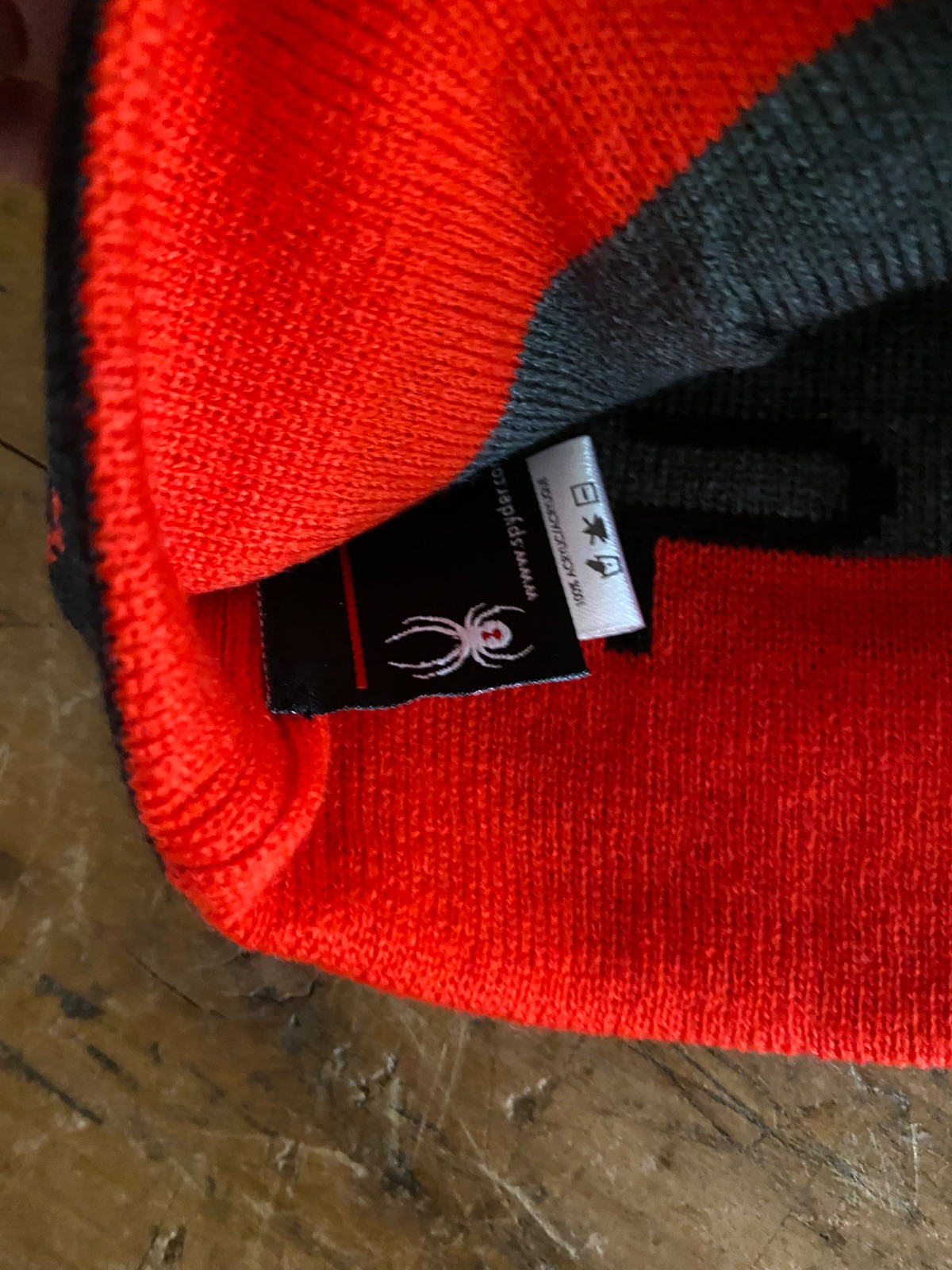 как выглядит Spyder Youth Reversable Beanie Winter Hat Black/Volcano One Size Youth Kids NWT фото