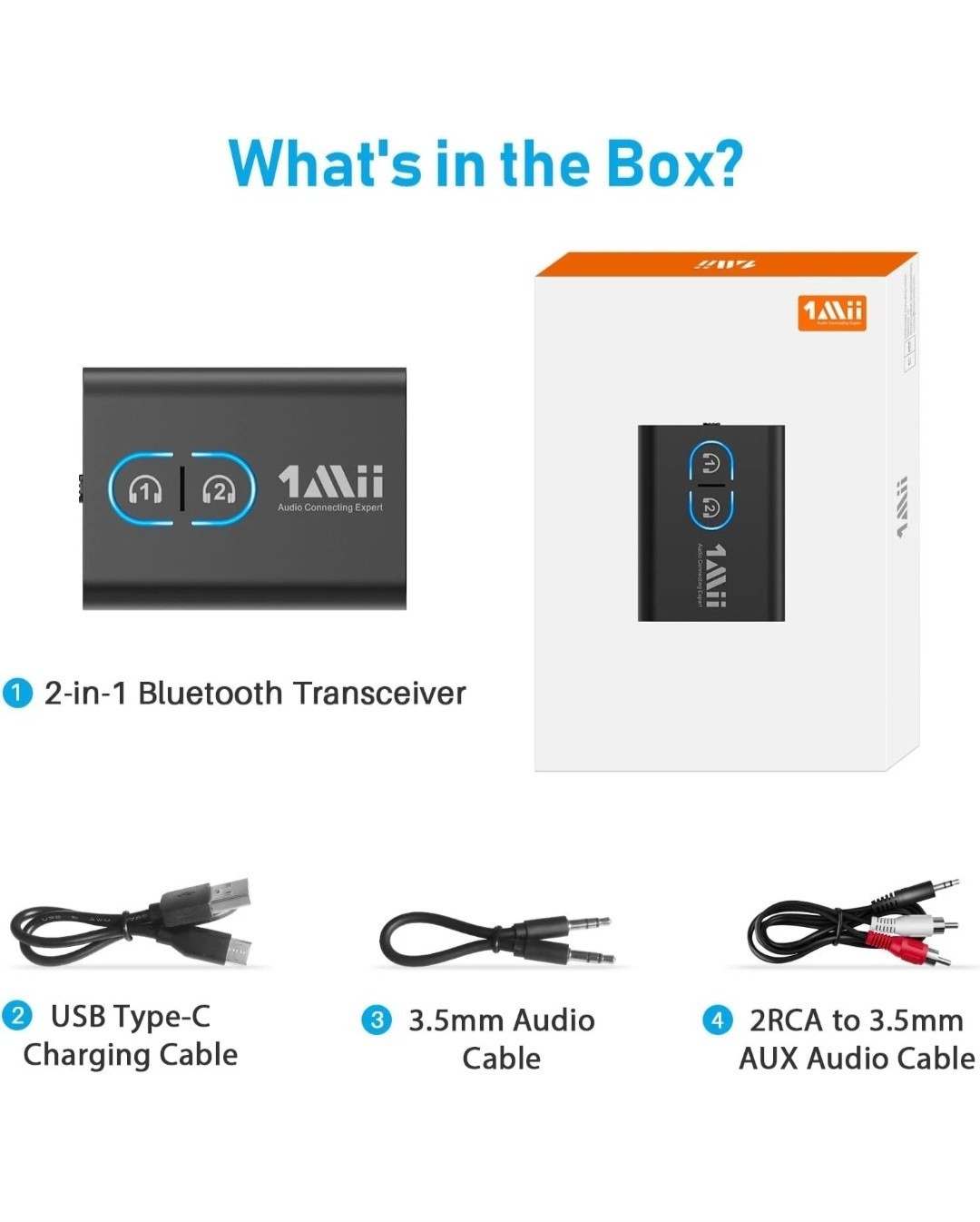 как выглядит 1Mii Bluetooth 5.3 Transmitter Receiver for TV to Wireless Headphones, Dual Link фото