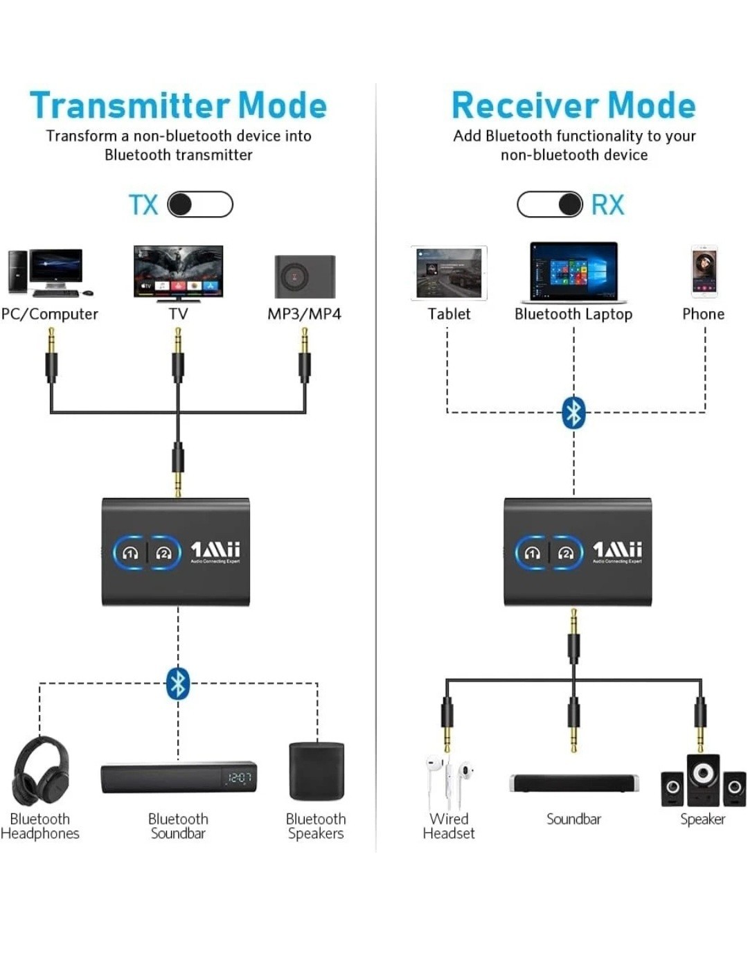 1Mii Bluetooth 5.3 Transmitter Receiver for TV to Wireless Headphones, Dual Link