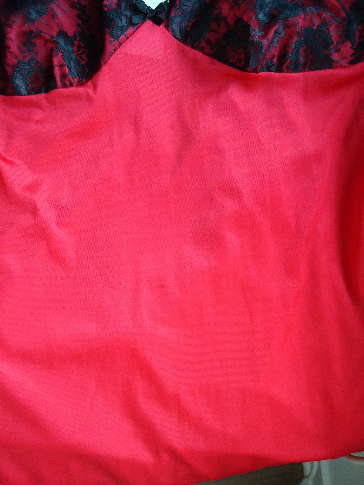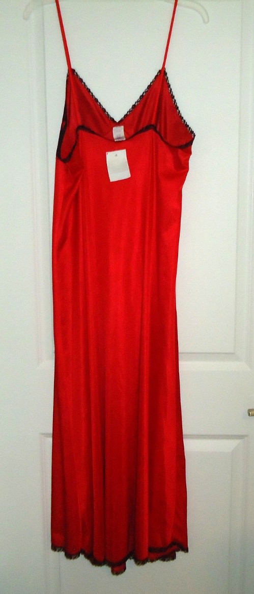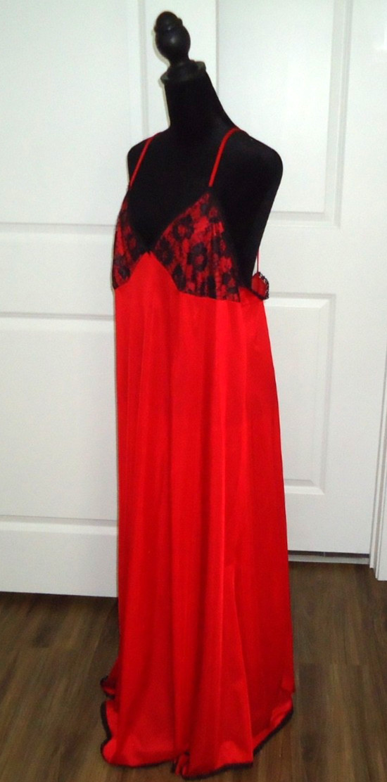 как выглядит RARE Vtg-70s USA Womens 100 Nylon Red Black Floral Lace Long Slip Dress Siz-XL фото