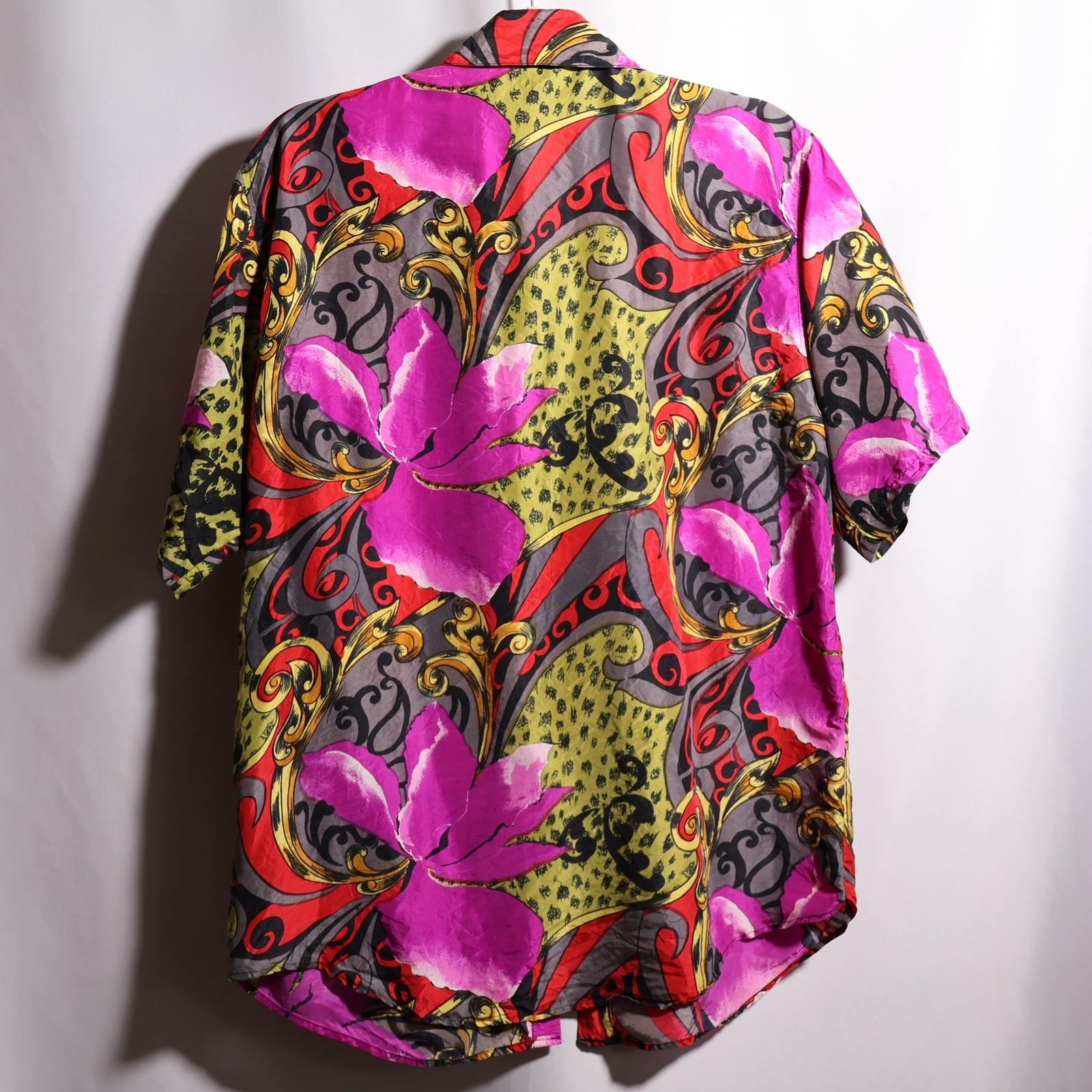 VTG 80s Stunt Baroque Purple Floral Silk Shirt Mens S Miami Vice Maximalist Top