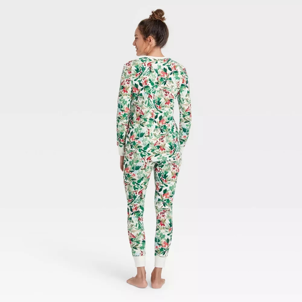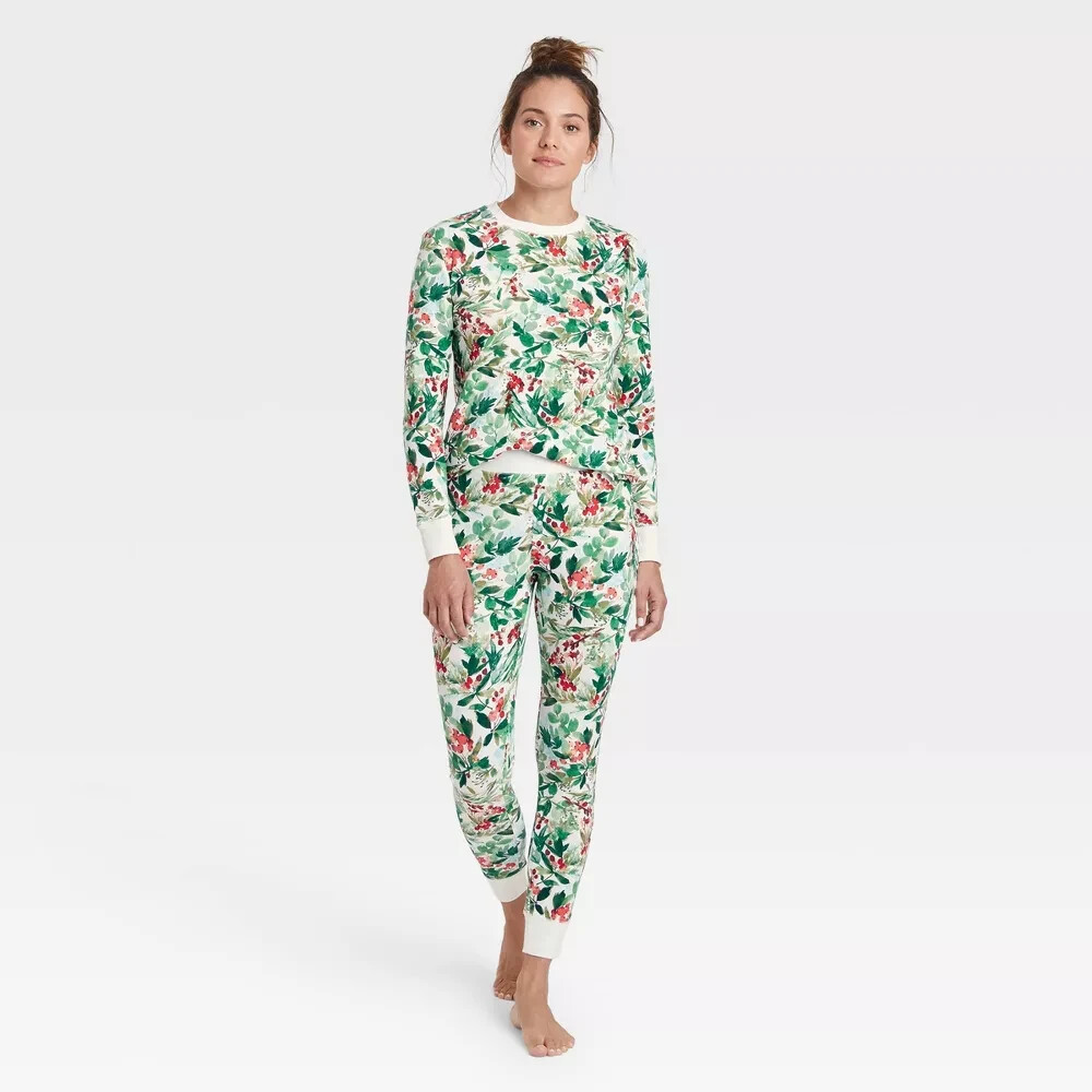 как выглядит New w/Tags Stars Above Size S FREE SHIP Womens 2 PC Thermal Pajamas Holly Print фото