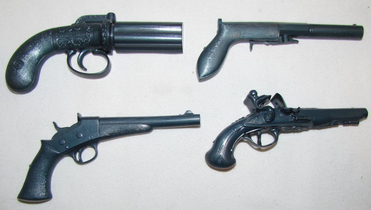 1957 Kellogg's Famous Guns of History Cereal Premiums, 4 different with box back