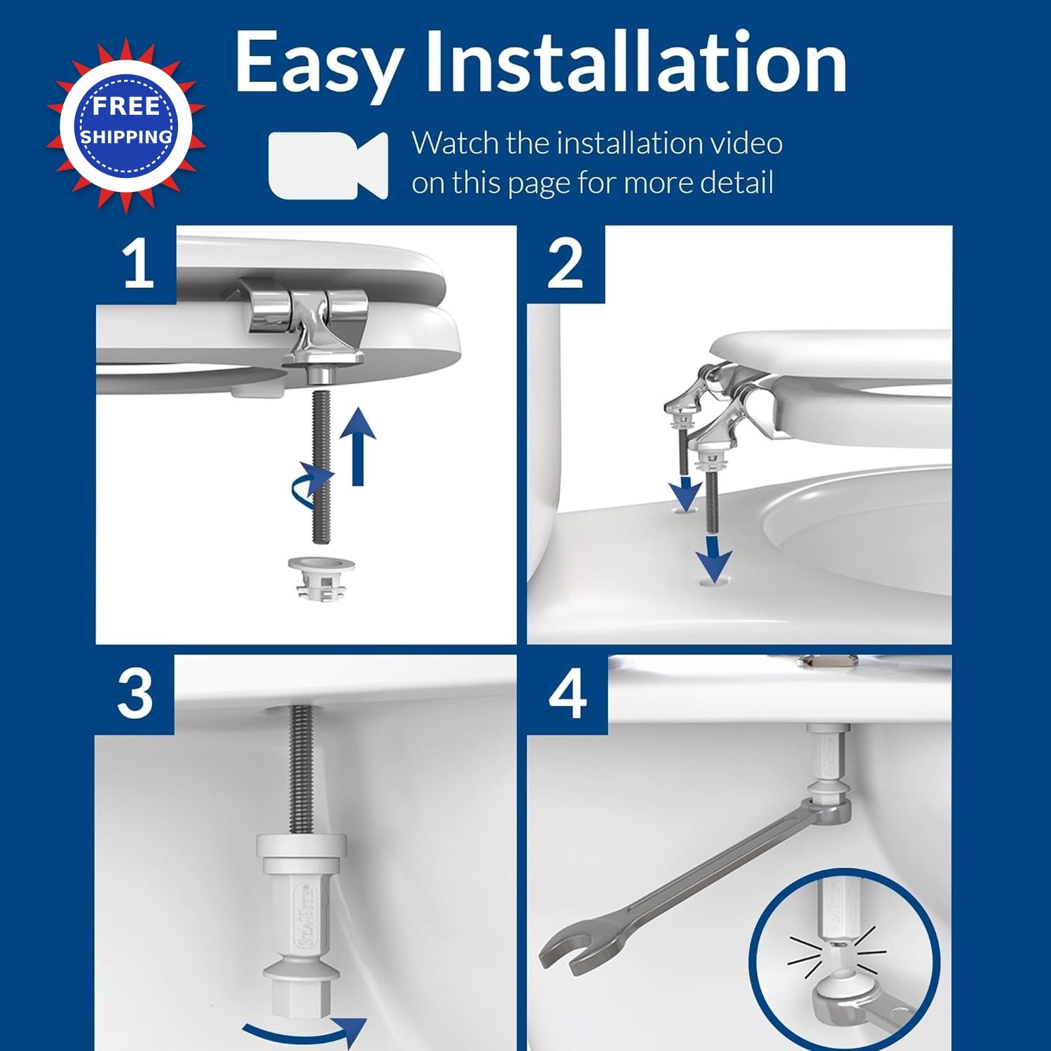 Mayfair Bennett Toilet Seat Elongated White Brushed Nickel Hinges Slow Close