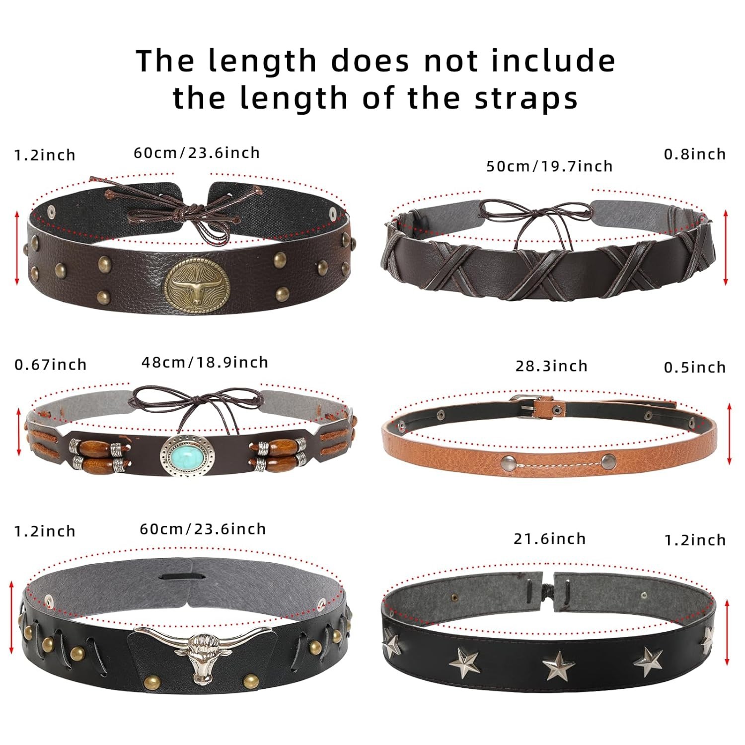 6Pcs Cowboy Hat Bands for Women Men Western Hat Band Cowboy Cowgirl Accessori...