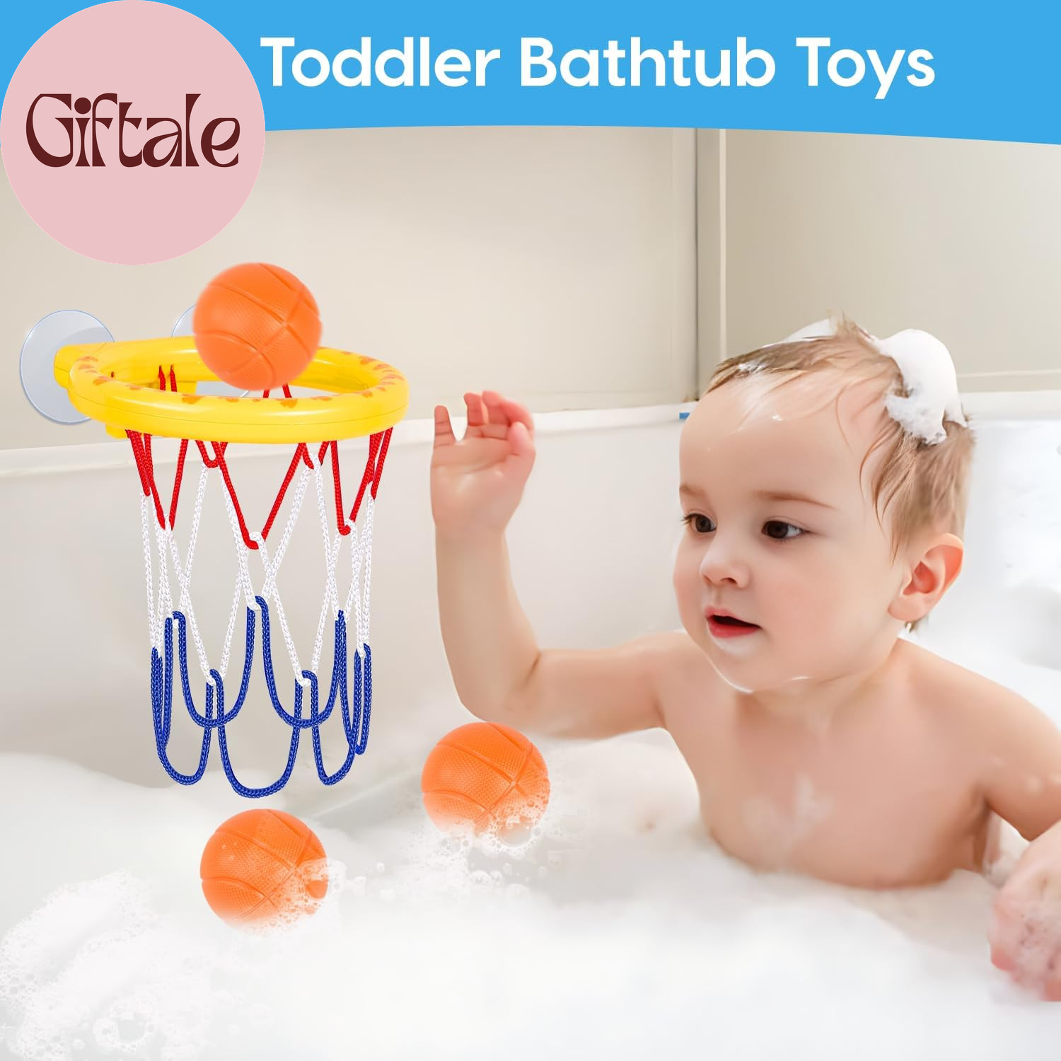 Bath Toys, Bathtub Basketball Hoop for Kids Toddlers, Bath Shower Toys for Kids,