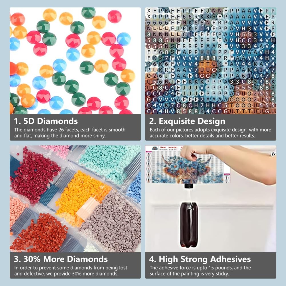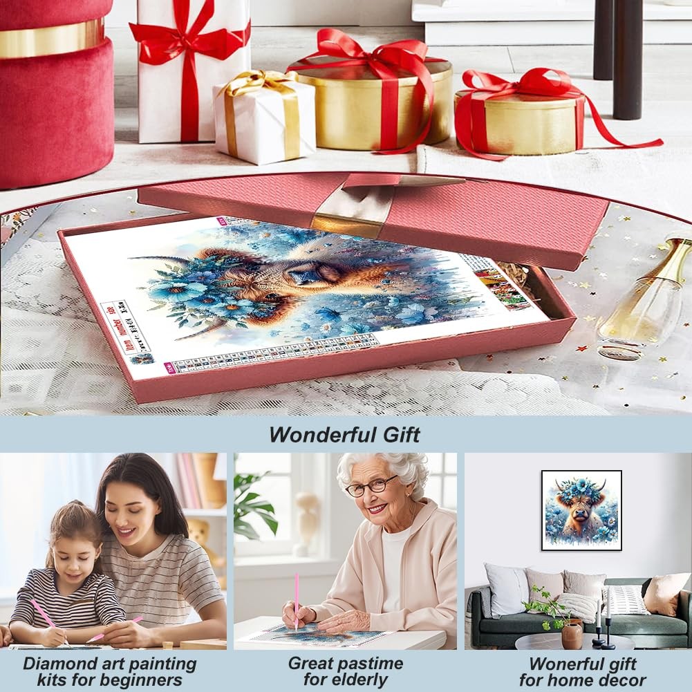 Highland Cow Diamond Art Kits for Adults, 5D Diamond Painting Kits for Beginner