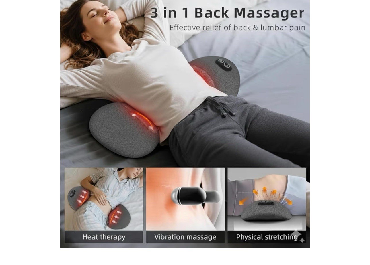 3 In 1 Electric Lumbar Support Pillow Smooth Spine Triple Fusion Back Massager
