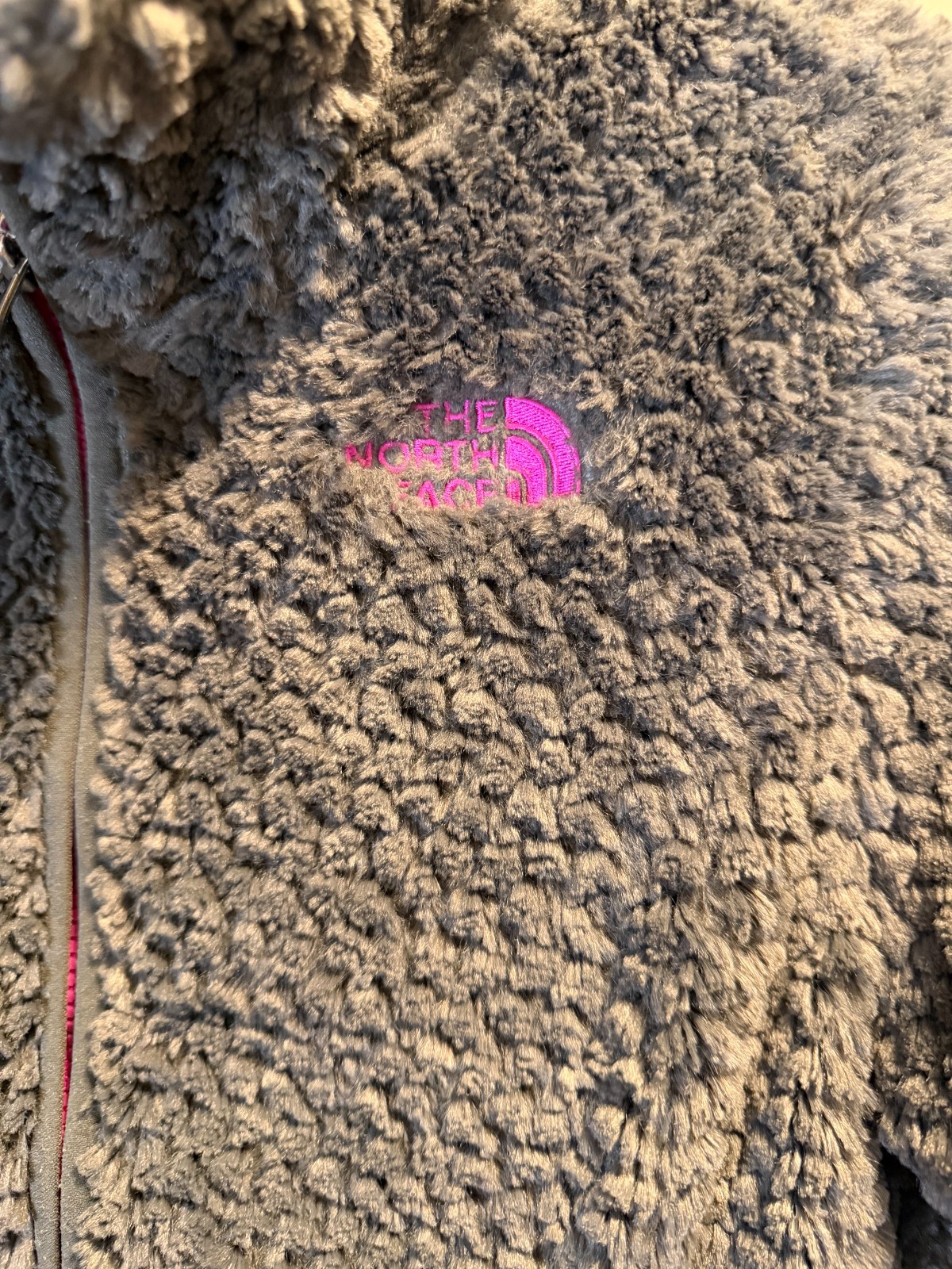 North Face girls' grey/pink plush fleece jacket size 10-12
