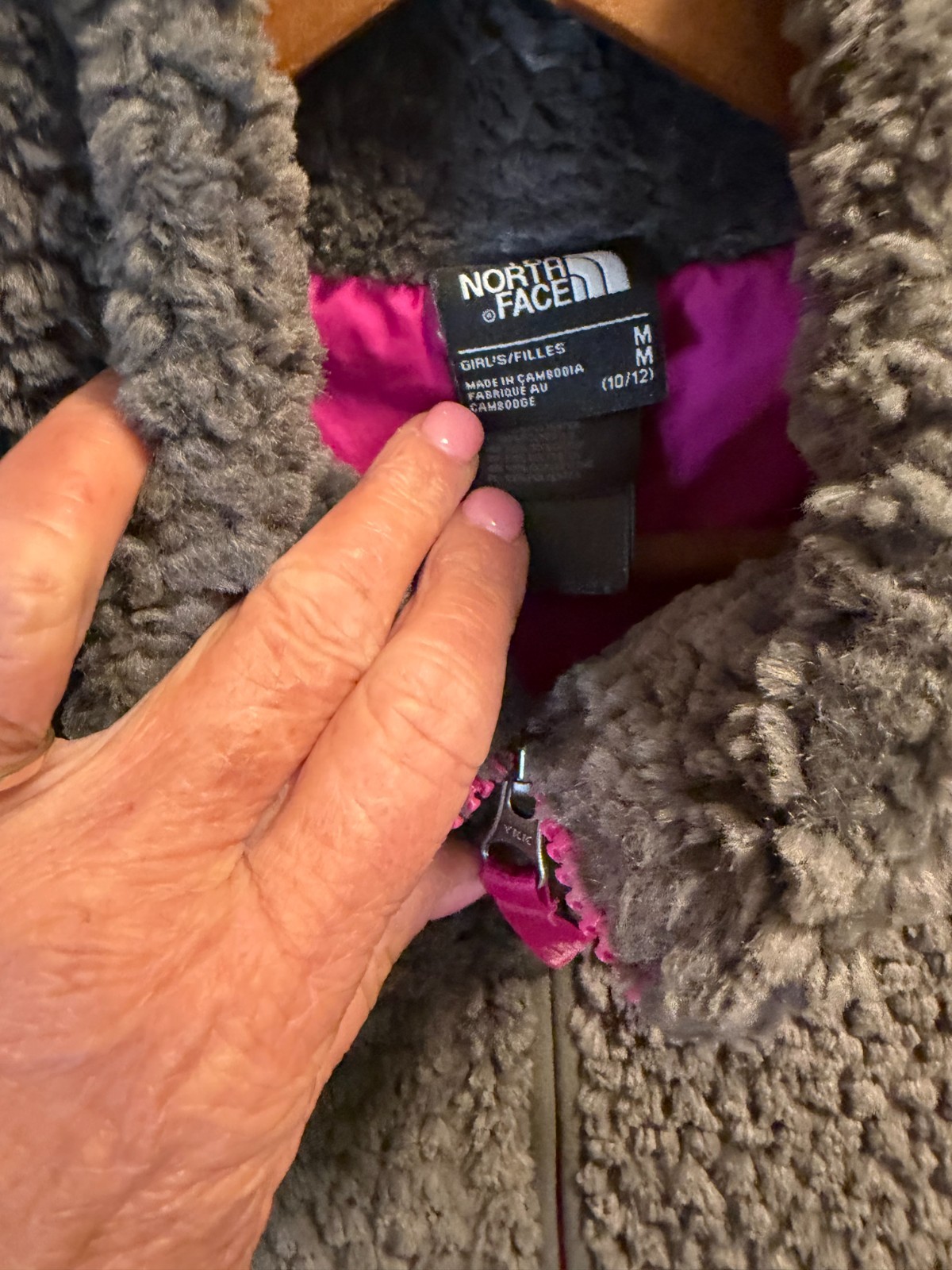 как выглядит North Face girls grey/pink plush fleece jacket size 10-12 фото