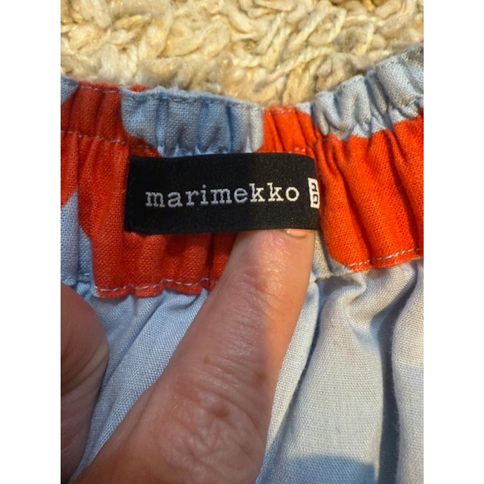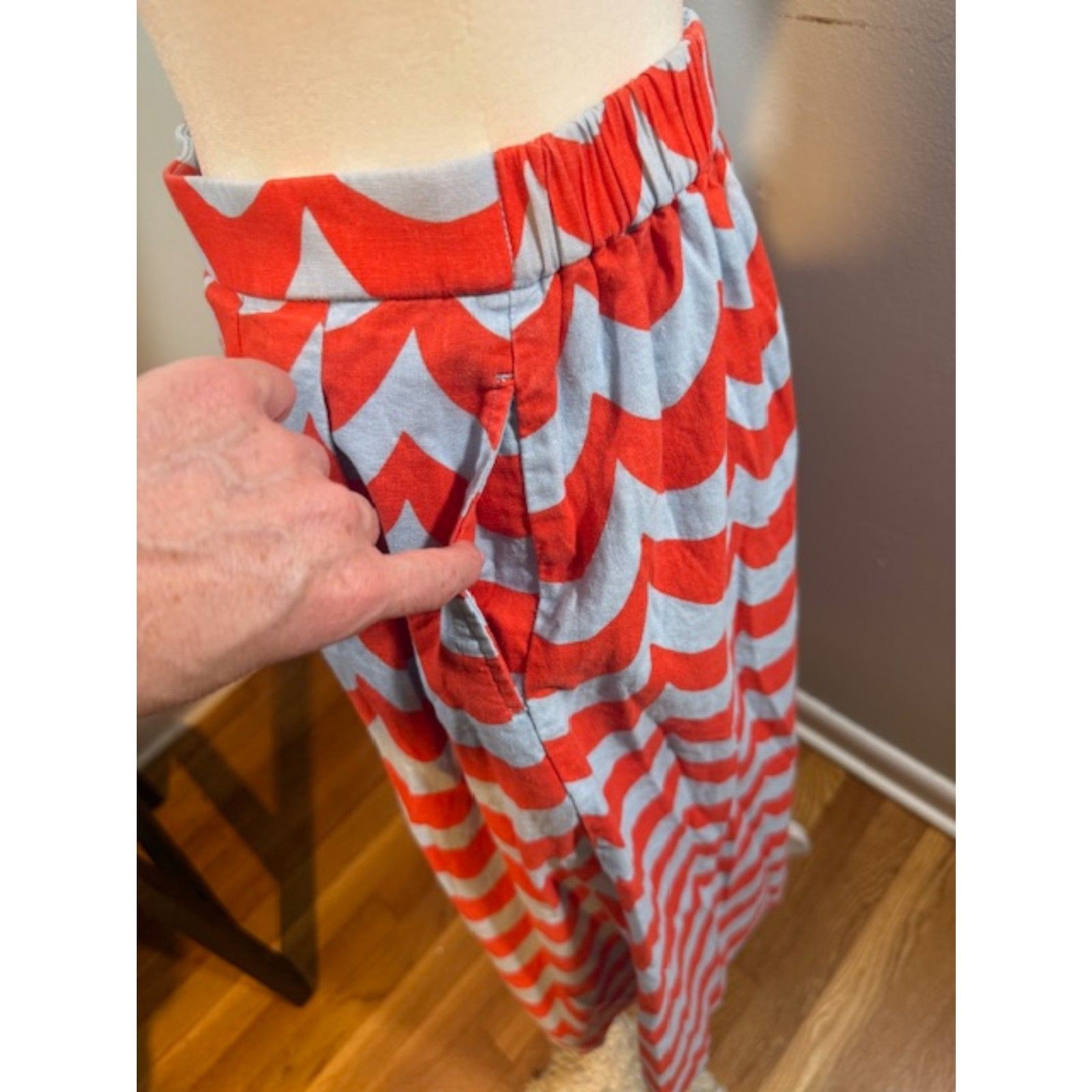 как выглядит UNIQLO x Marimekko Wave Print Linen Blend Midi Skirt S Orange Blue Scandi фото