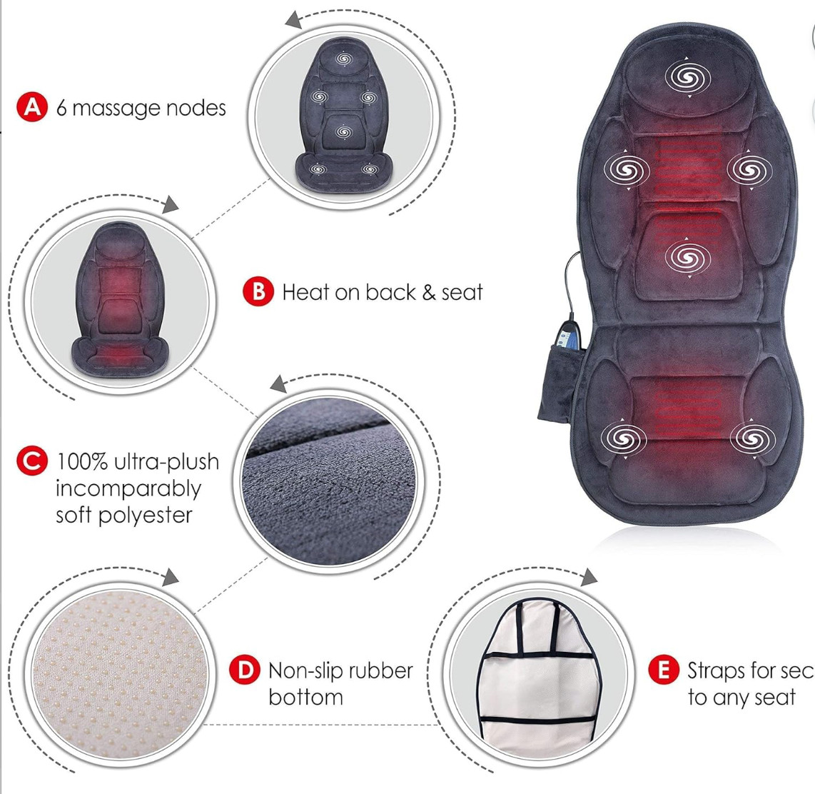 как выглядит Snailax Vibration Back Massager with Heat, Massage Seat Cushion with 6 Vibrating фото
