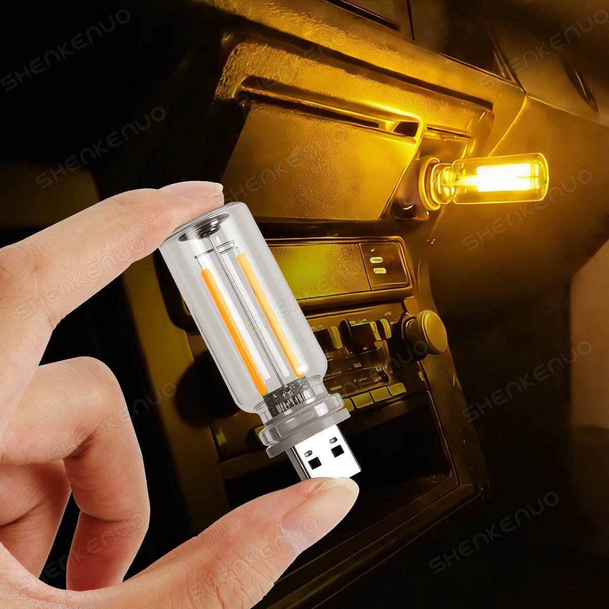 2-Pack Mini USB LED Car Ambient Light Interior Atmosphere Lamp Plug Play