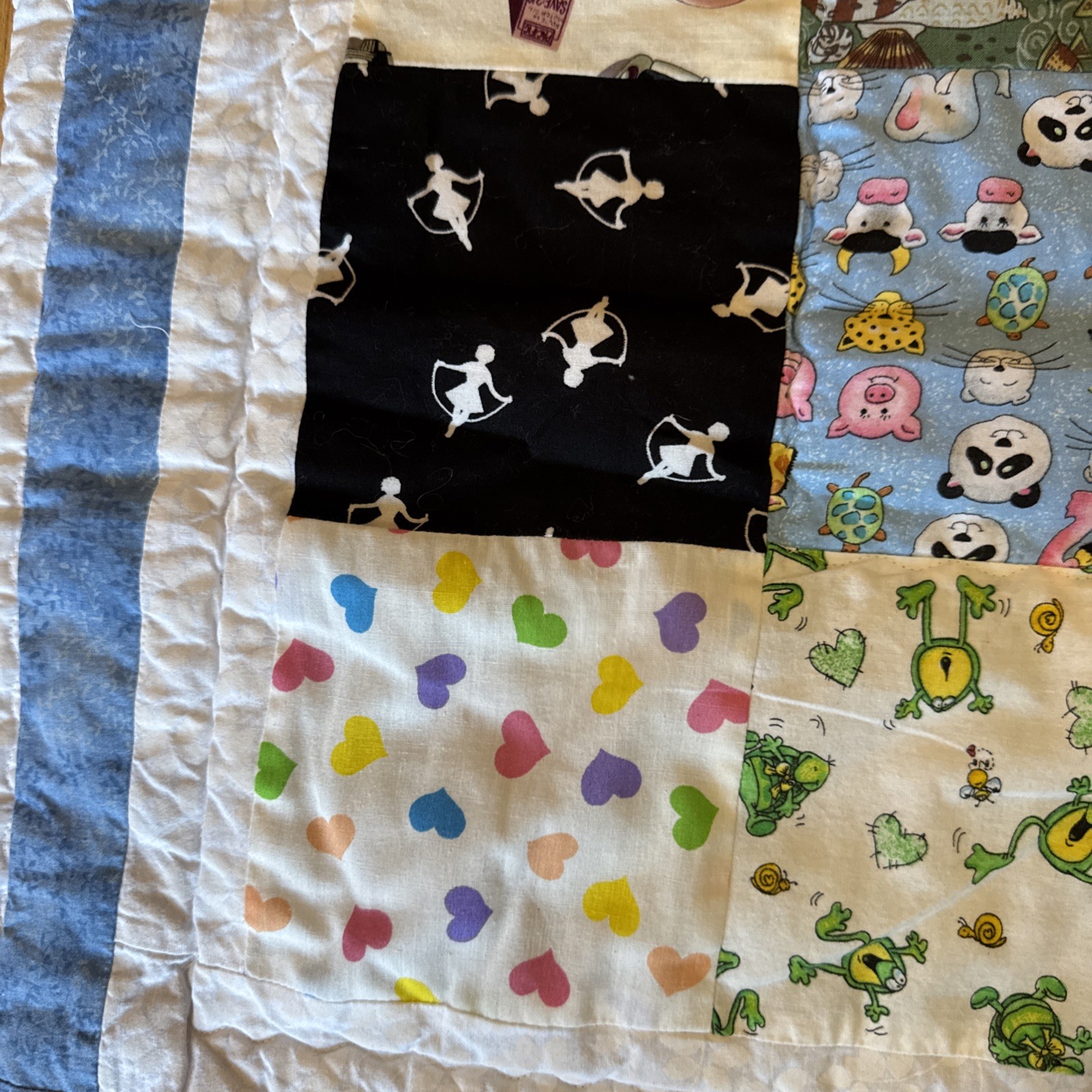 как выглядит Handmade Baby Quilt 38 x 34 Patchwork Crib Lap Quilt Colorful Cotton фото