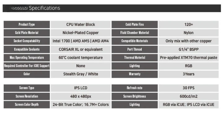 CORSAIR iCUE XC7 RGB ELITE LCD CPU Water Block Hydro Series Custom
