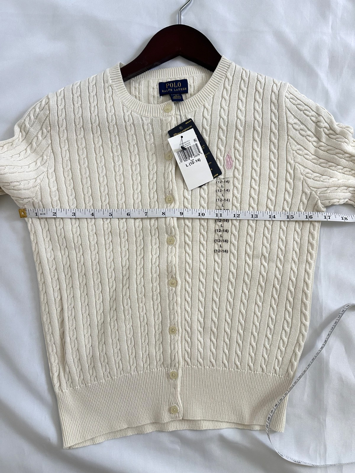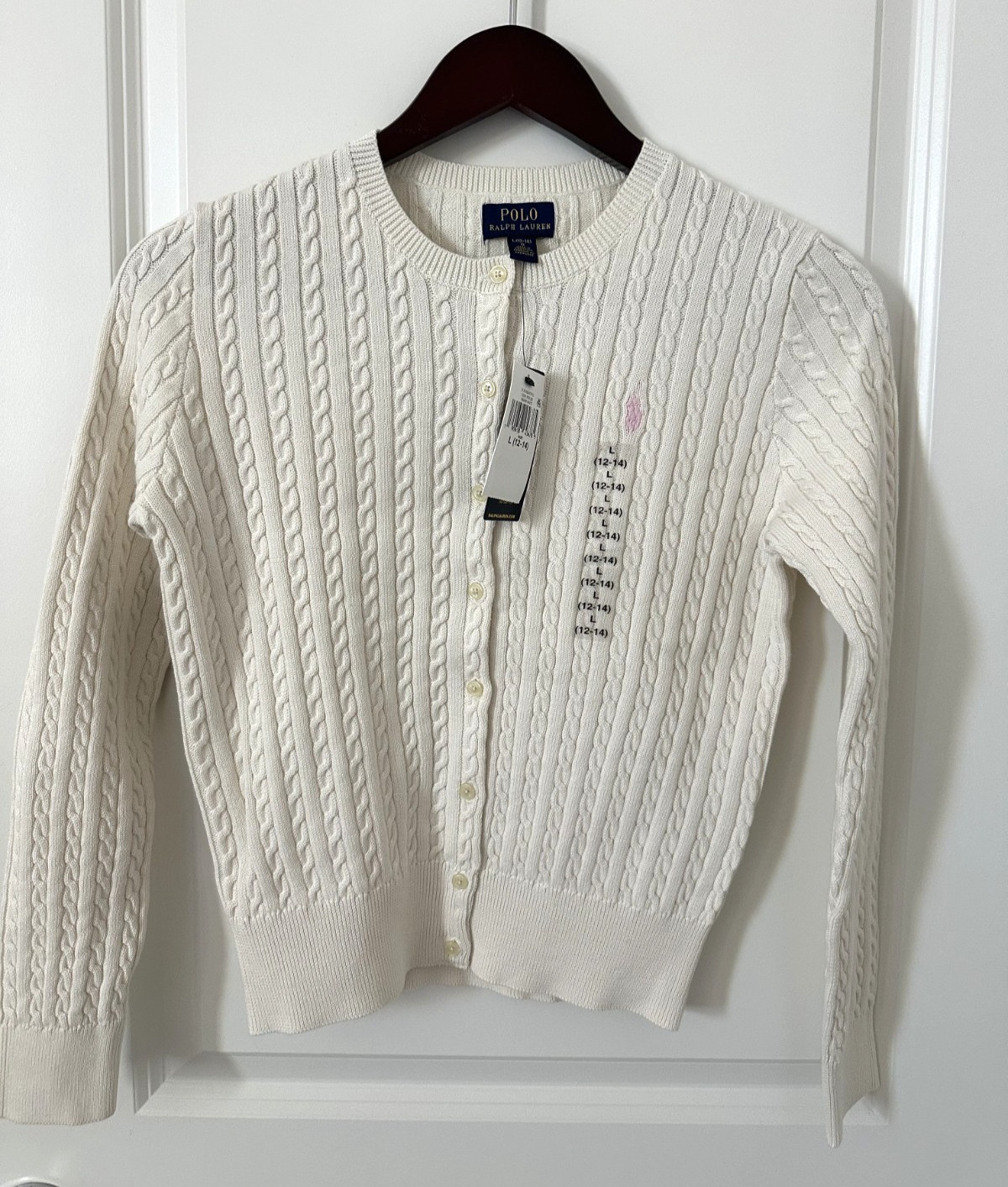 Polo Ralph Lauren Girl s Cable Knit Cardigan Sweater White Size L 12-14 NWT