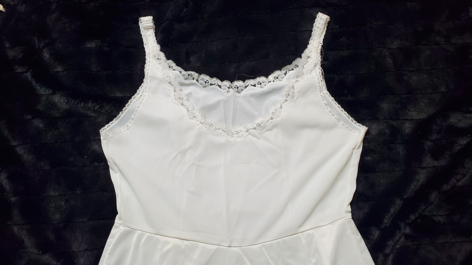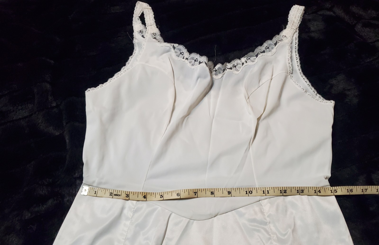 как выглядит Vtg Wonder Maid Full Slip White Size 36 Non Cling Lace Trim USA 60s фото