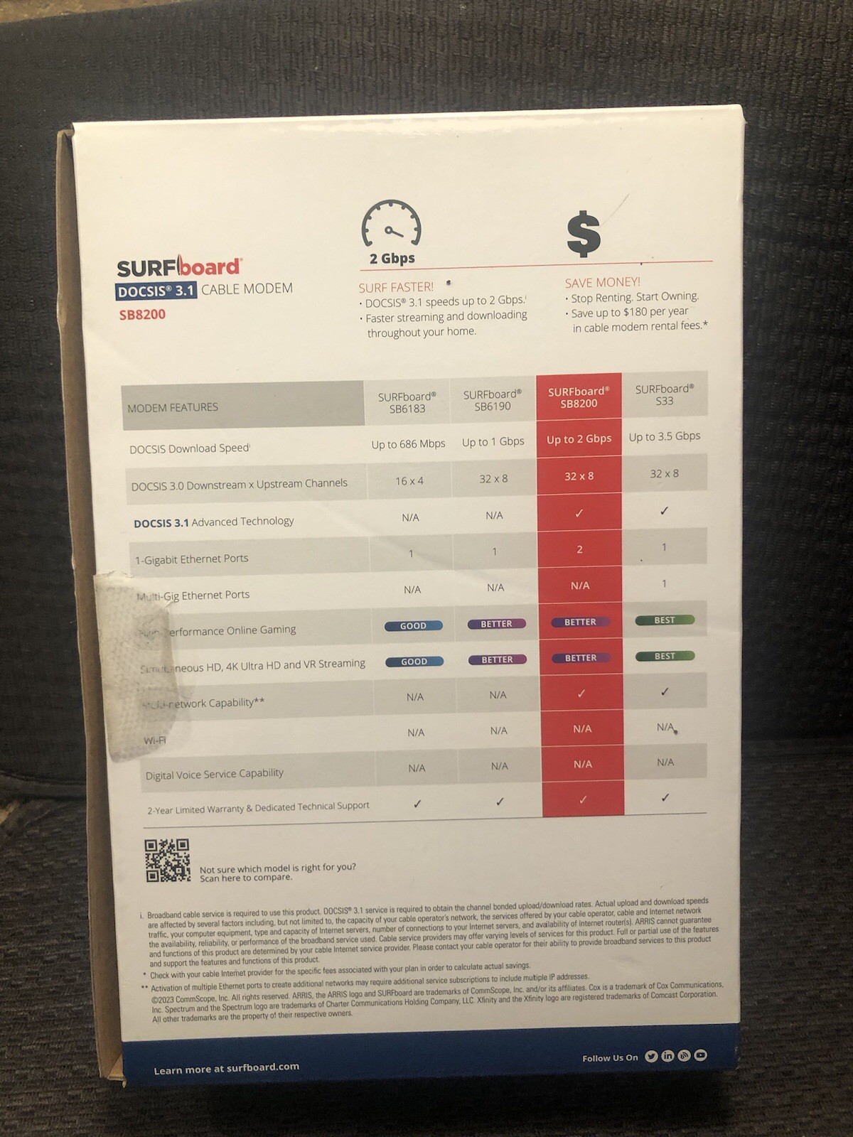 ARRIS SURFboard SB8200 DOCSIS 3.1 10 Gbps Cable Modem