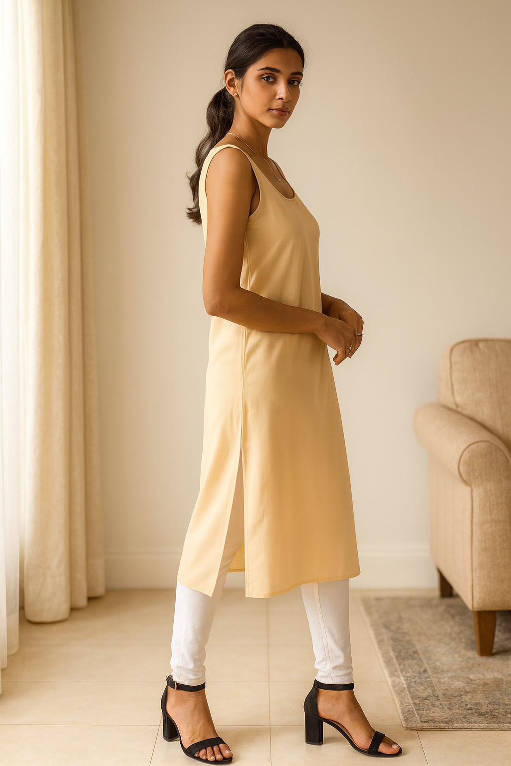 Women Full Length Cotton Slip Long Camisole Underdress Side Slit S-3XL
