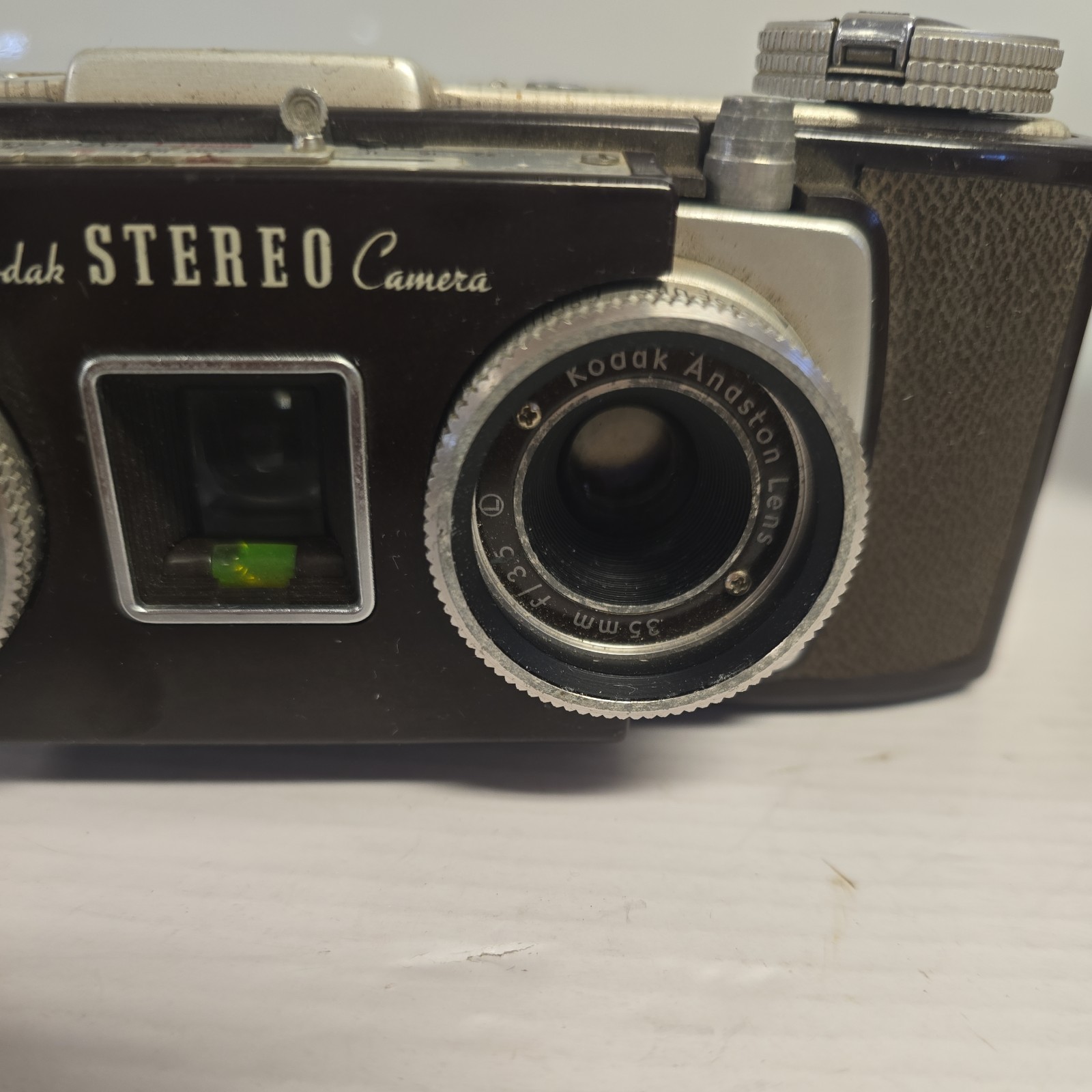 Kodak stereo 35 mm. camera 1950's F.35 lenses 3D type with leather case