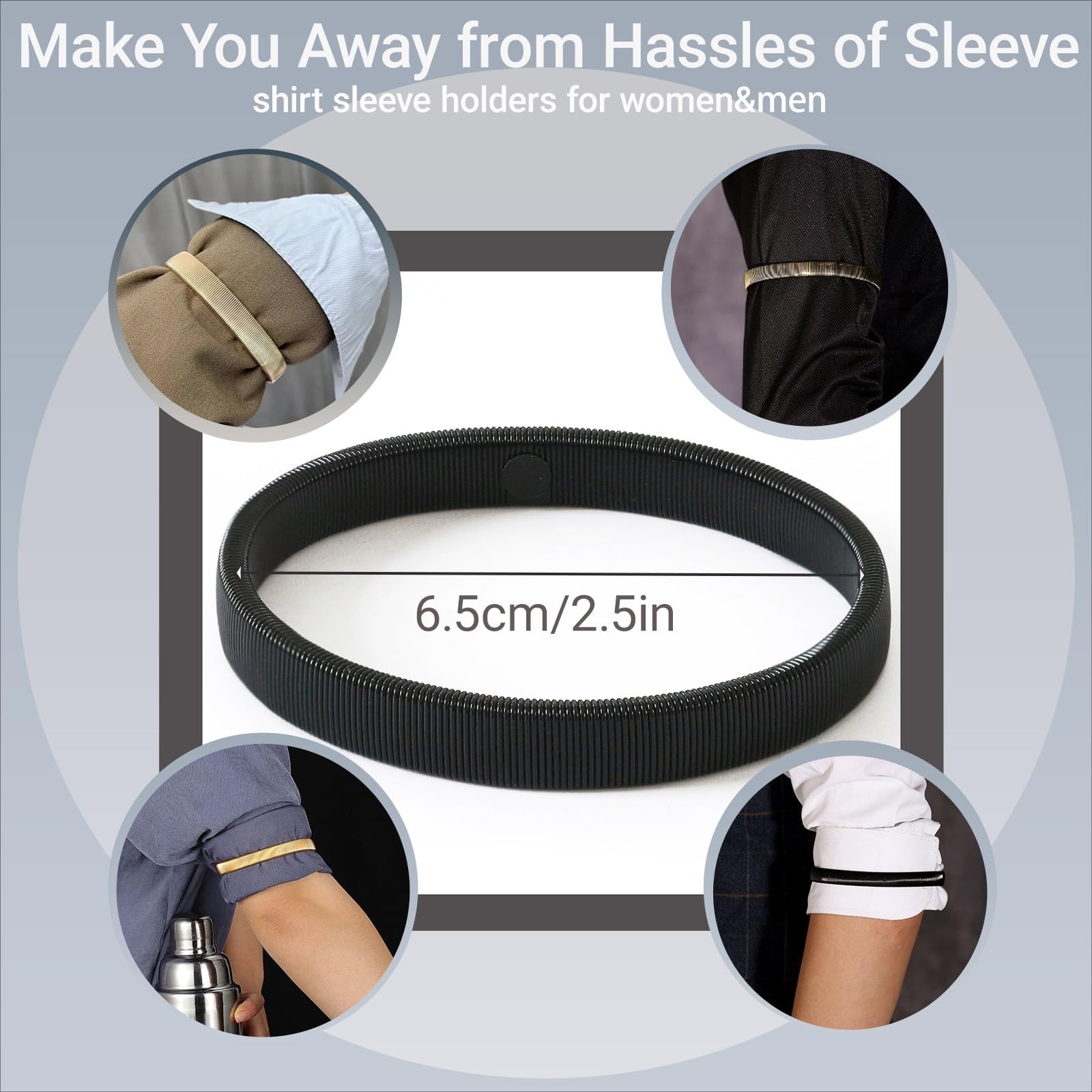 как выглядит 6 Pcs Stretchy Metal Shirt Sleeve Garters Anti Slip Arm Bands for Men Women фото