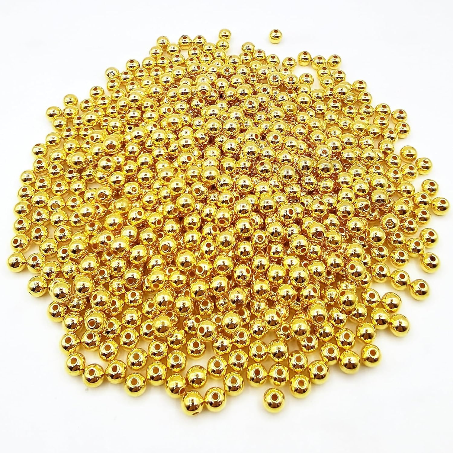 Amaney 500Pcs 6Mm Smooth round Beads Gold Spacer Loose Ball Beads for Bracelet J