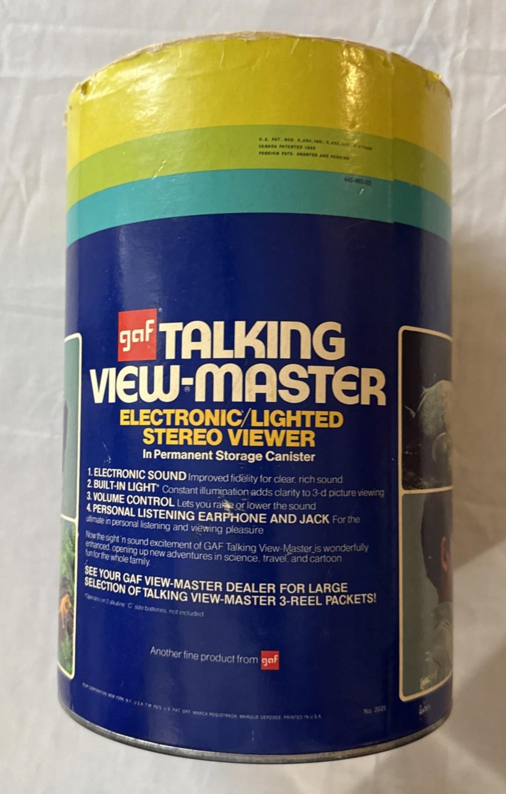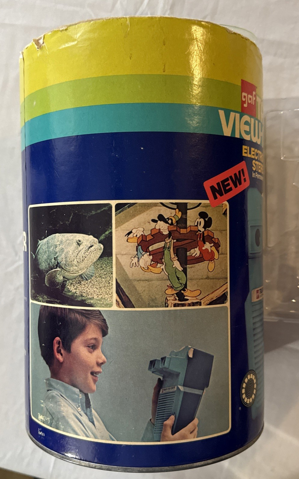 Vintage 1976 GAF Talking View-Master Viewer w/ Canister Blue Works Read Details