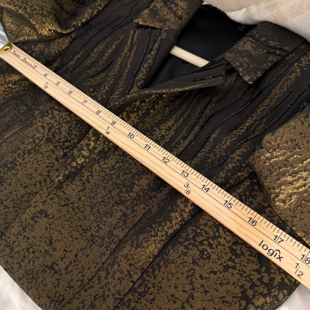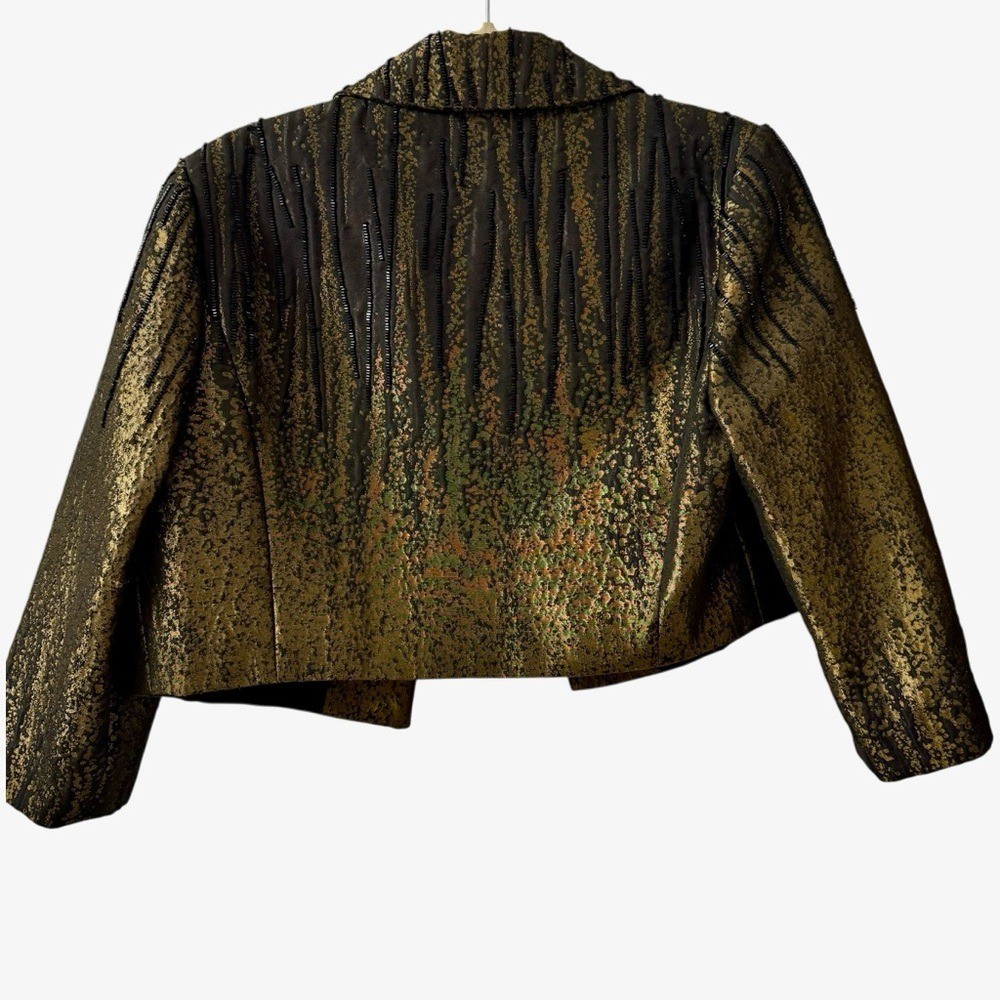 как выглядит Carmen Marc Valvo Collection Cropped Evening Jacket Size 10 Gold Black Beaded фото