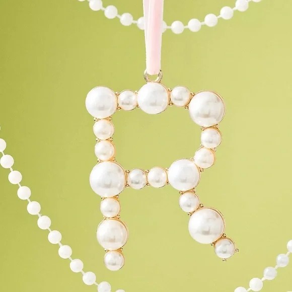 Anthropologie Monogram Letter R Initial Pearl Golden Ornament