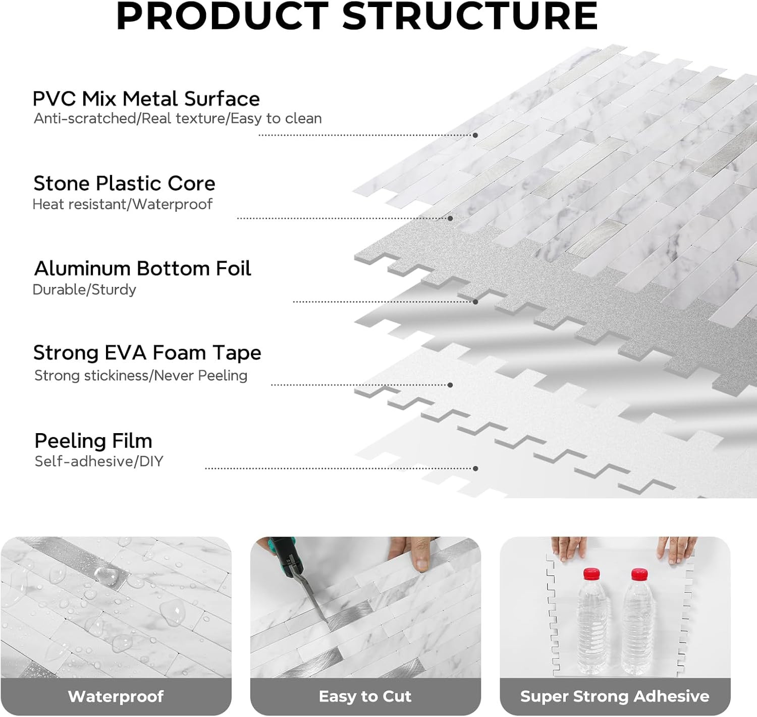 Peel and Stick Backsplash, PVC Wall Tiles Stick on Backsplash for Kitchen 1 Shee