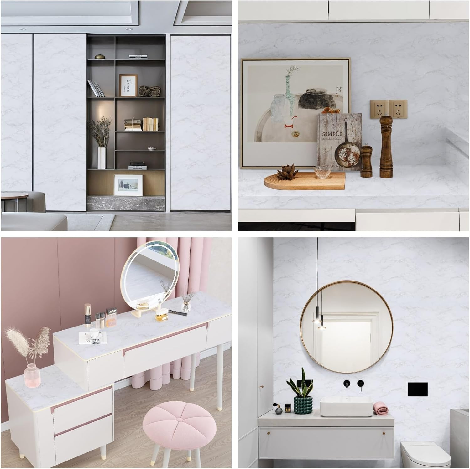 Glossy Marble Contact Paper White Wallpaper Peel and Stick Self Adhesive Waterpr