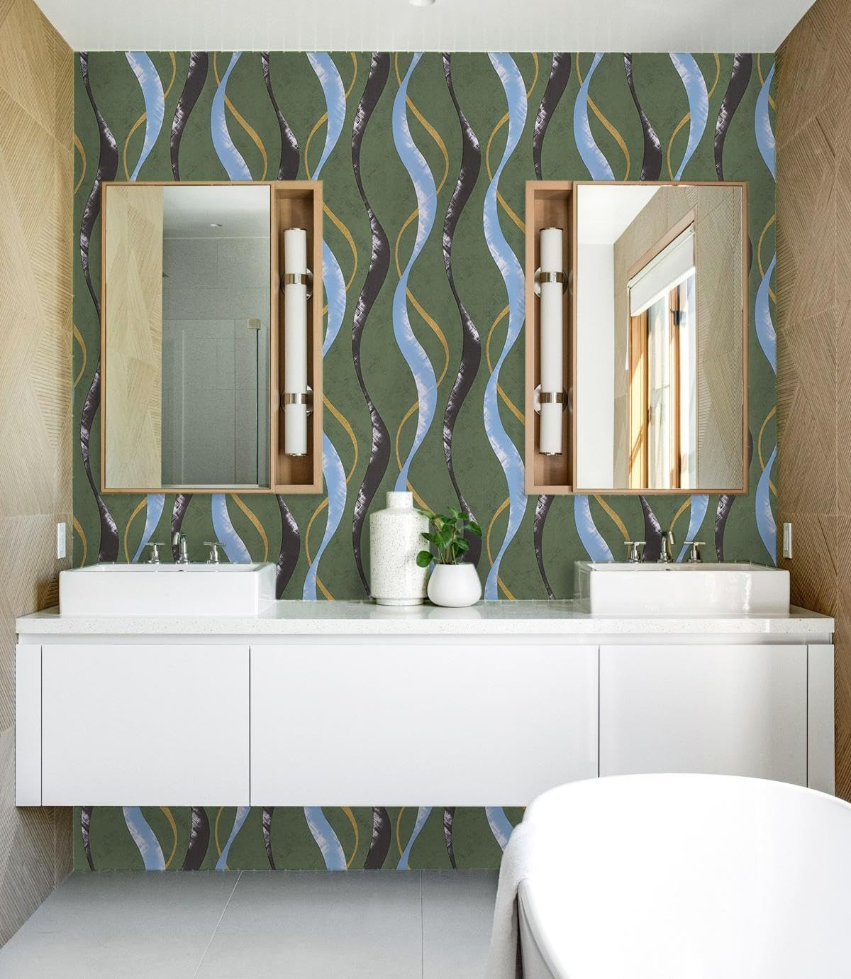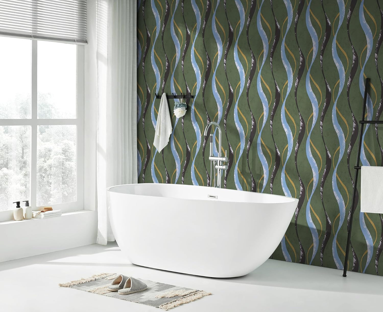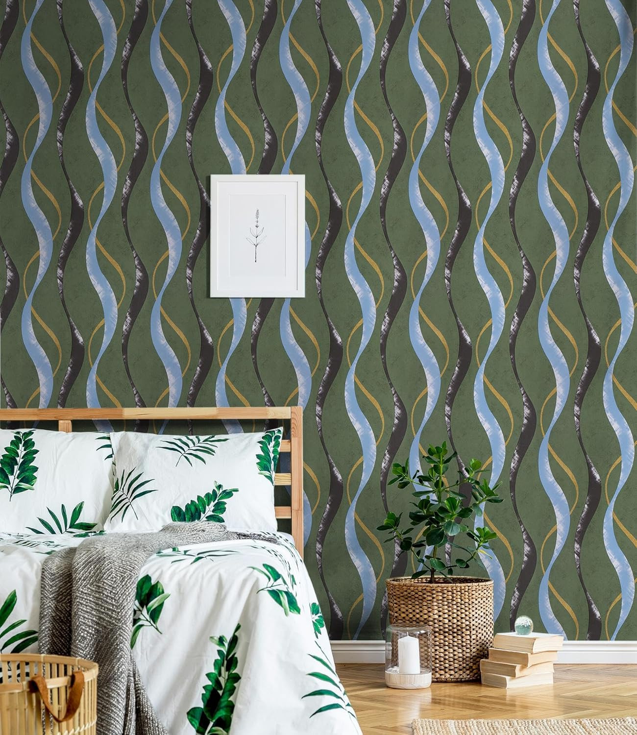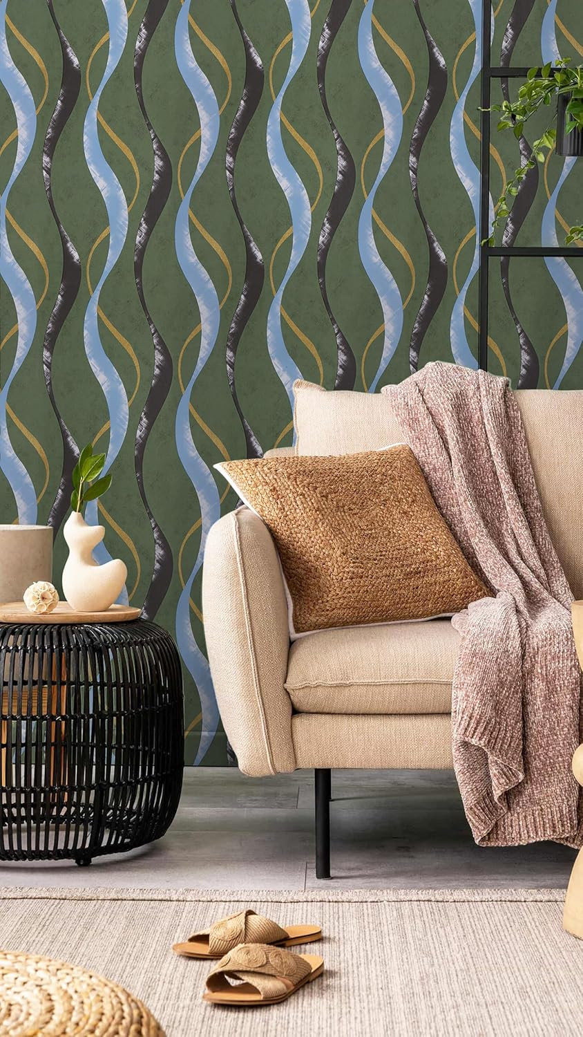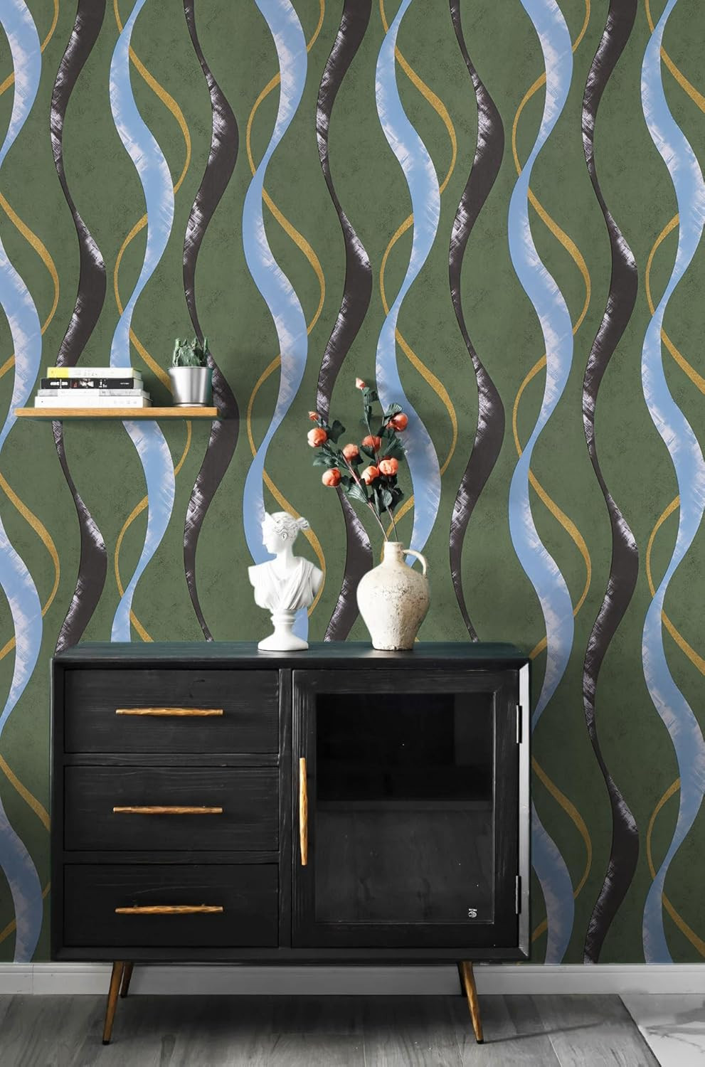 Vintage Green Peel and Stick Wallpaper Striped Self Adhesive Removable Wallpaper