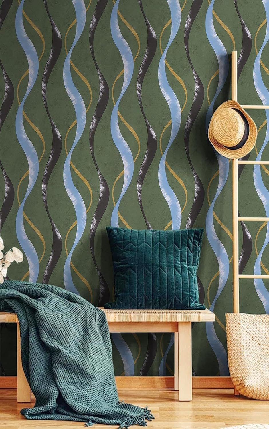 как выглядит Vintage Green Peel and Stick Wallpaper Striped Self Adhesive Removable Wallpaper фото