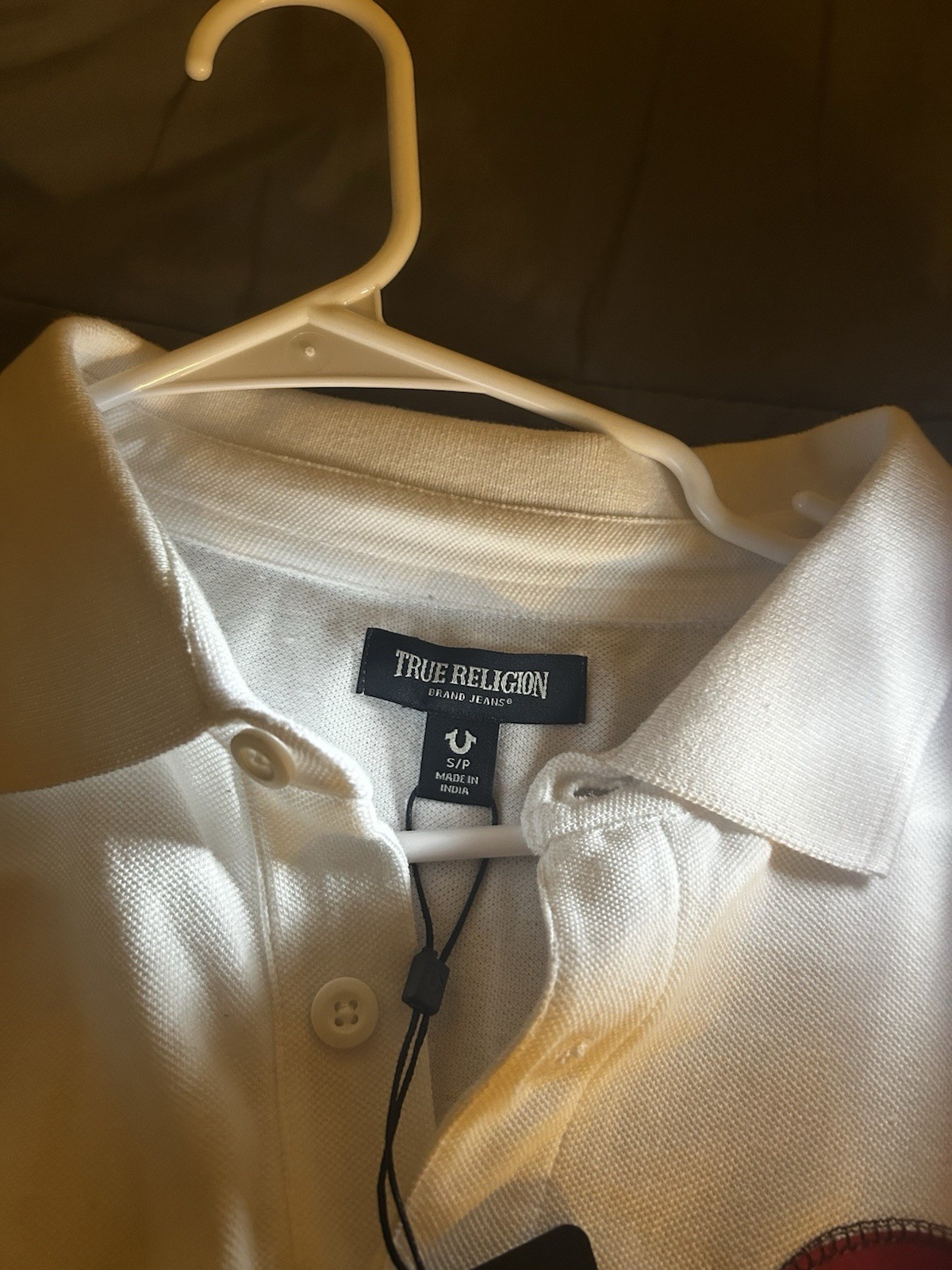 как выглядит True Religion Relaxed Patch Polo Optic White Short Sleeve Mens Size S фото