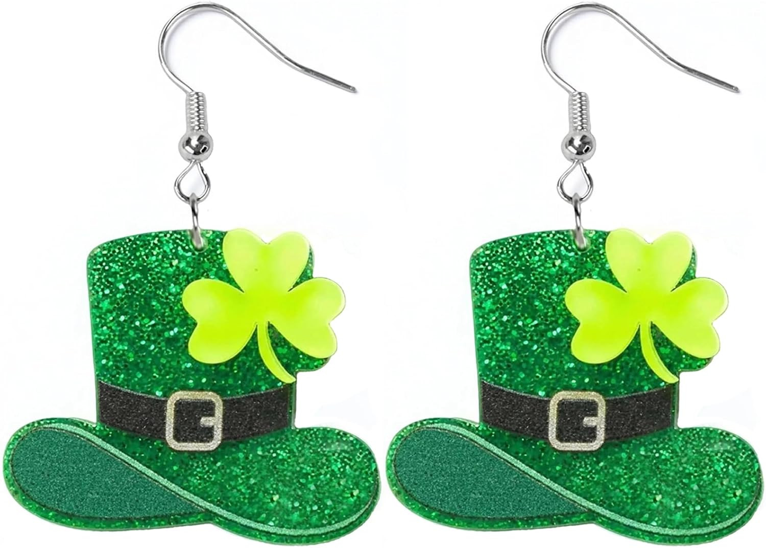 как выглядит St. PatrickS Day Green Hat Rainbow Earrings for Women,Good Luck Dangling Earrin фото