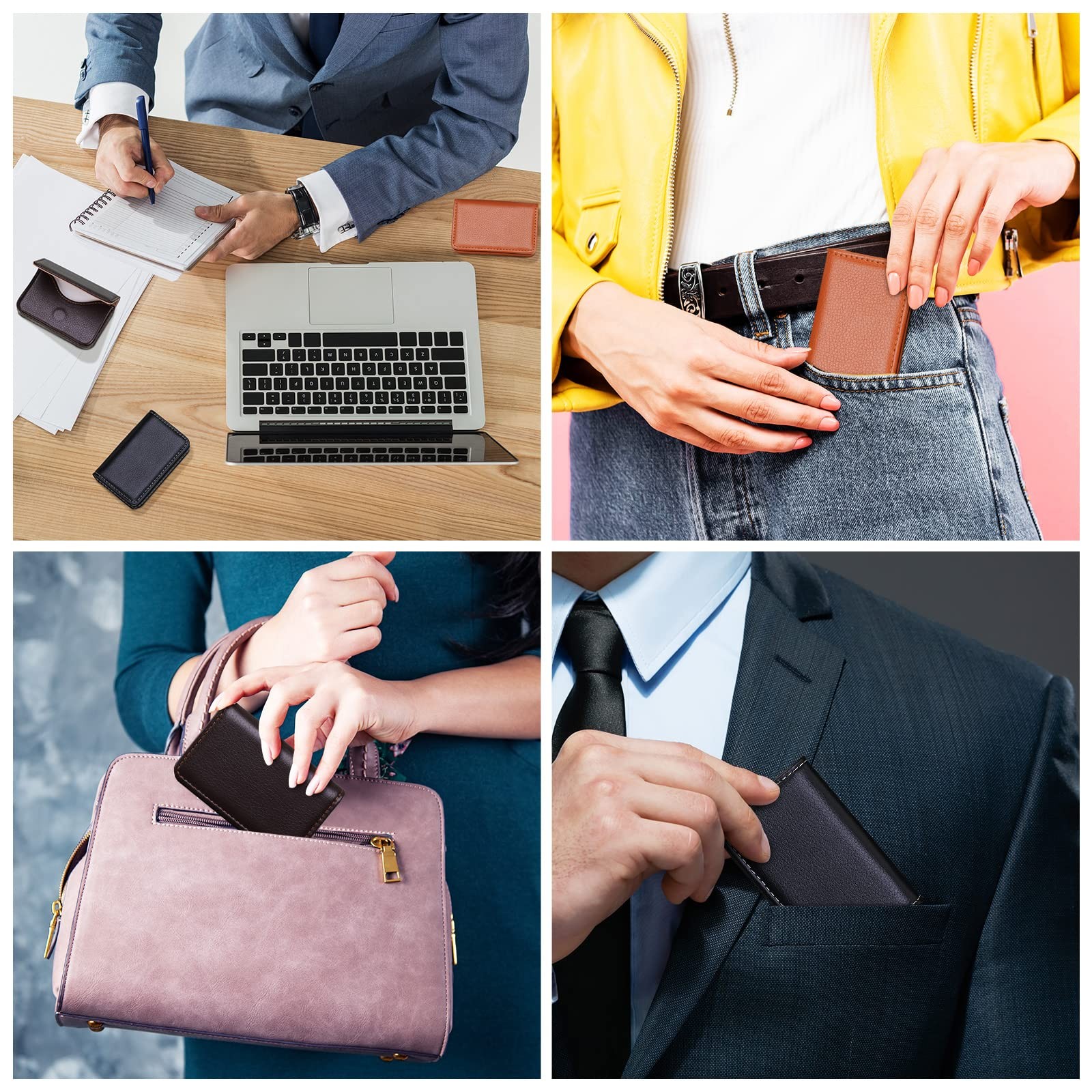 3 Pcs Business Card Holder PU Leather Business Card Case Pocket Wallet Magnetic