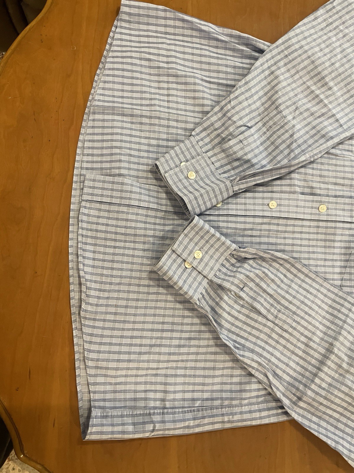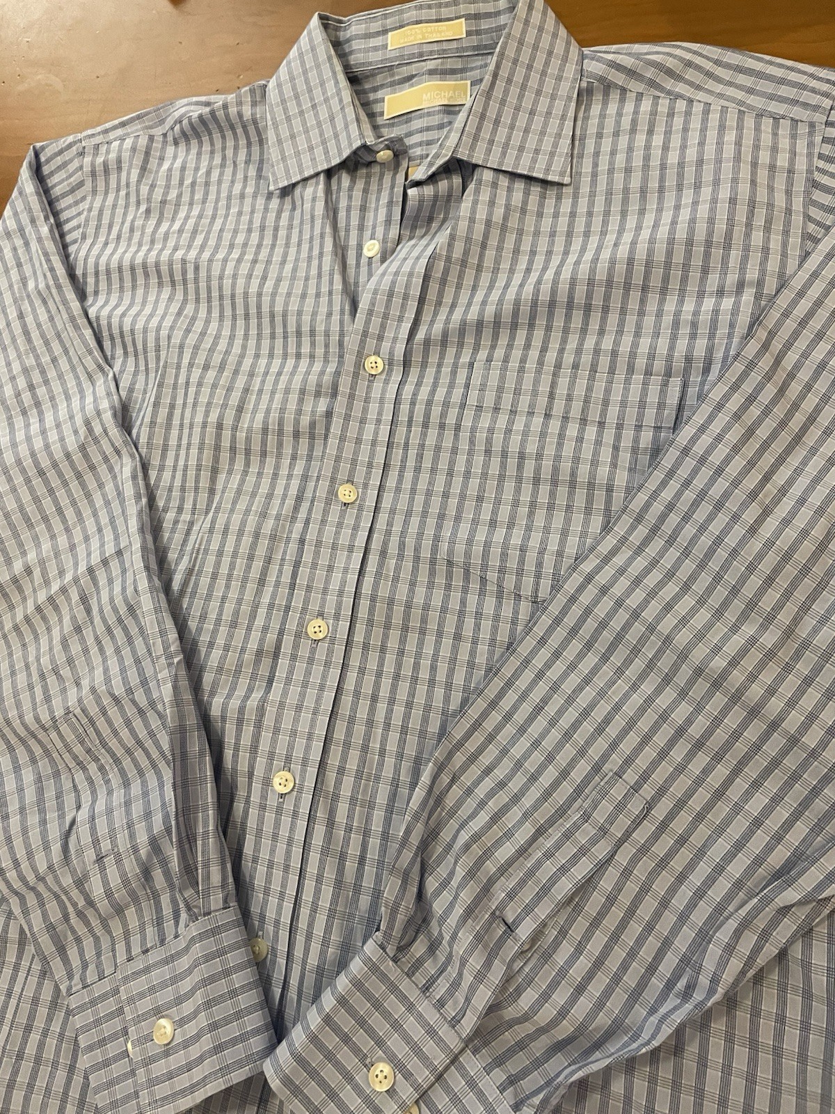 как выглядит Michael Kors Mens Blue Plaid Dress Shirt XL 17 Long Sleeve 100 Cotton фото