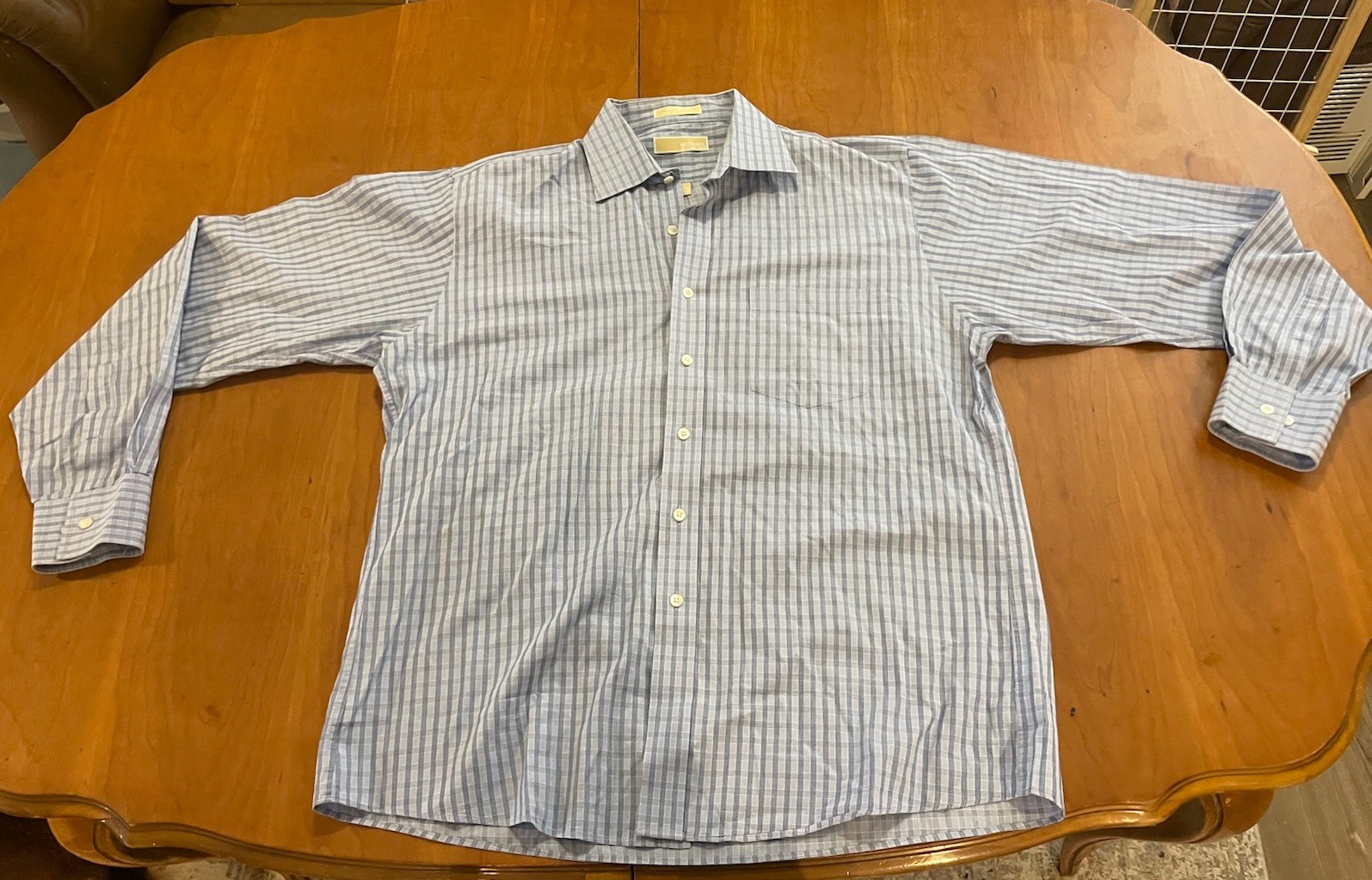 Michael Kors Men's Blue Plaid Dress Shirt XL 17 Long Sleeve 100 Cotton
