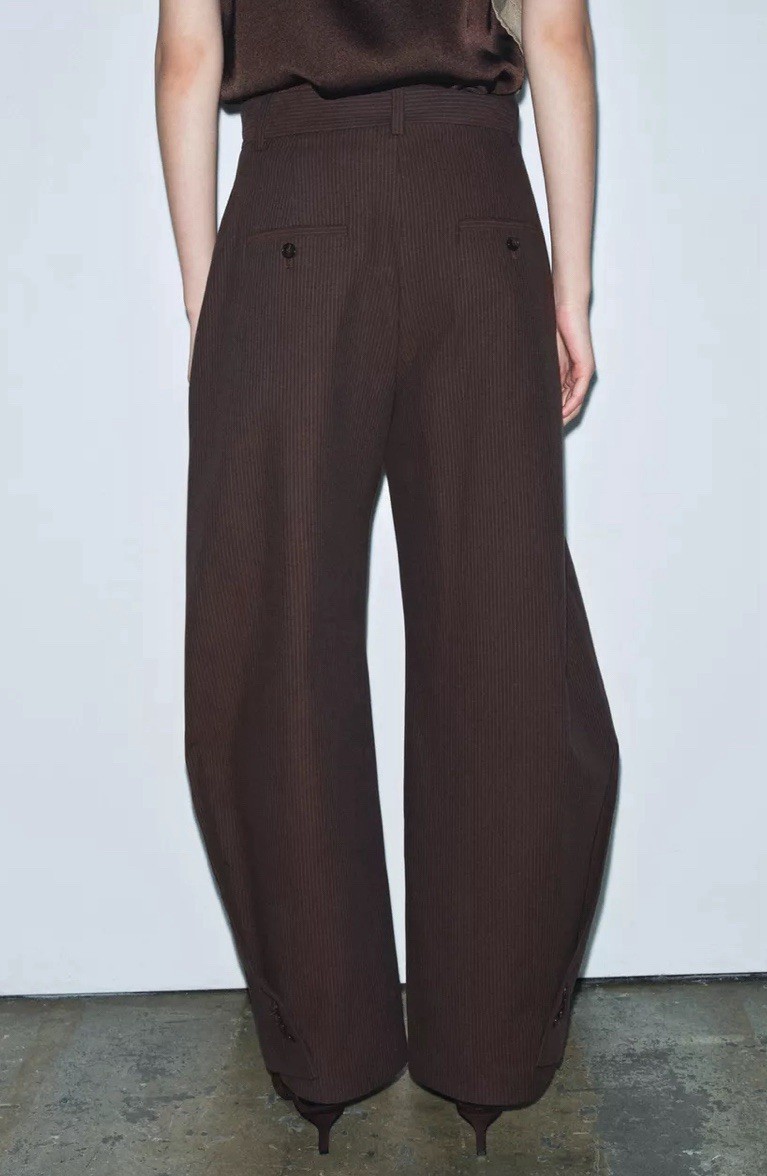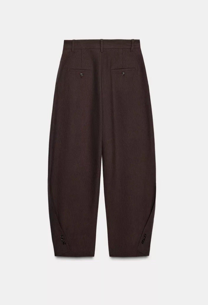 как выглядит ZARA ZW COLLECTION STRIPED LINEN BLEND BALLOON PANTS brown vigore 9260/243/719 фото